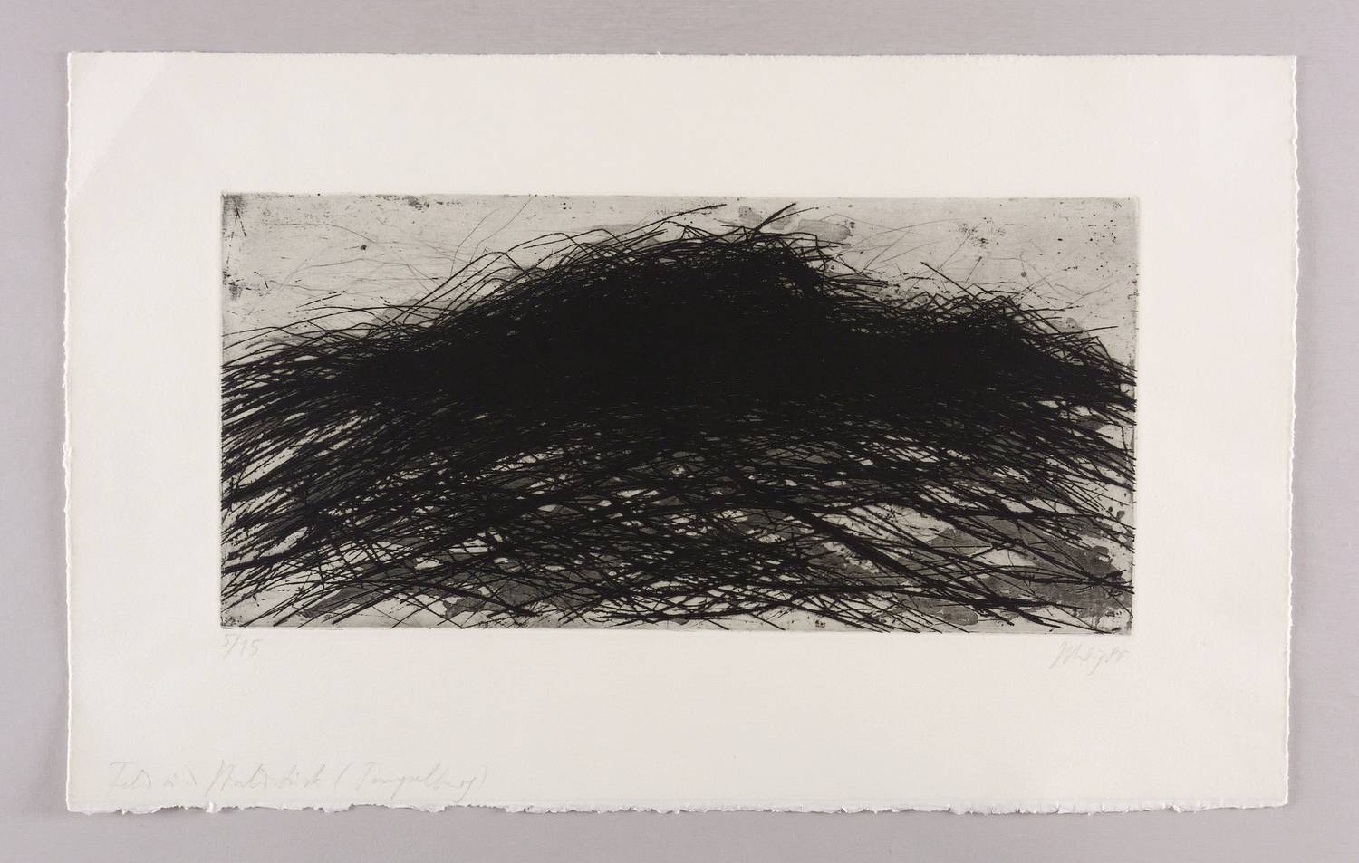 Rechts unten in Bleistift signiert und datiert: ″Uhlig 85″. Links Auflagenbezeichnung: ″5/15″ Im unteren Blattrand links Titel: ″Feld und Waldstück (Tempelberg)″. Wasserzeichen der Hahnemühle. – Tadelloses Exemplar. Sehr guter Zustand.