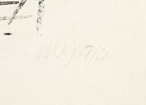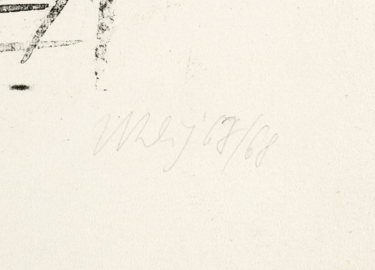 1967/1968. Lithografie / Kreidelithografie, in Schwarz, auf hartem hellchamois Weißenborn. – Originale Künstlergrafik, von Max Uhlig. – Auflage Exemplar Nr. 6/12. – 37,7 x 30,7 cm (Darstellung / Druckbild), 50 x 38 cm (Blatt).