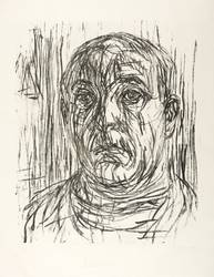 Nicht bei Oesinghaus. – In Bleistift rechts unten signiert und datiert: ″Uhlig 67/68″. Links Auflagenbezeichnung: ″6/12″. Mittig Titel: ″Selbstbild″. In der linken unteren Blattecke nochmals bezeichnet: ″Selbstbild″. – Seltenes Blatt. – Guter Zustand.