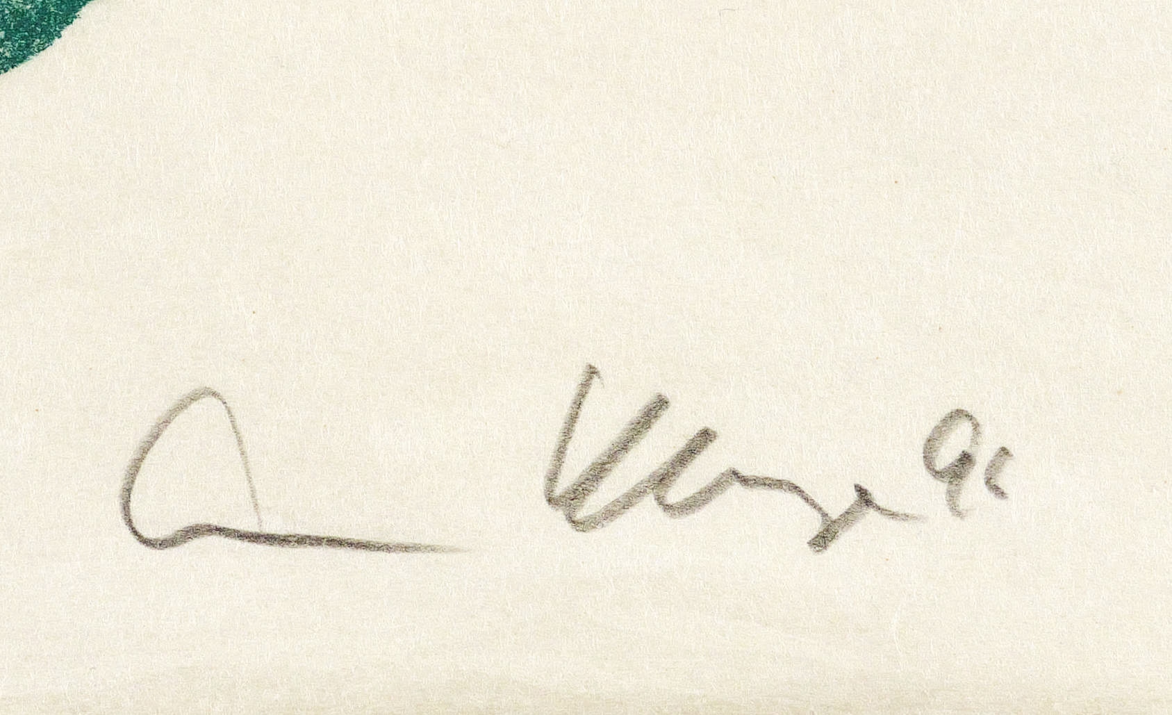 1996. Farbholzschnitt, in Grün, Braun & Schwarz, auf Japanbütten. – Originale Künstlergrafik, von Gustav Kluge. – 71,4 x 62,5 cm (Darstellung / Druckbild), 87 x 73 cm (Blatt).
