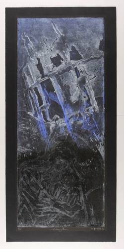 1993. Farbradierung / Aquatinta & Strichätzung, in Blau, Weiß & Grau, auf schwarzem Velinkarton. – Von Ulrich Hachulla. – Auflage Exemplar Nr. 7/25. – 100,0 x 41,9 cm (Darstellung / Platte), 113 x 53 cm (Blatt).
