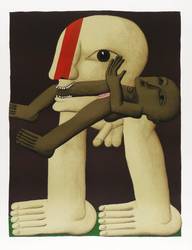 Horst Antes (*1936 Heppenheim - lebt und arbeitet in Karlsruhe, Berlin und Castellina in Chianti / Italien). Deutscher Maler, Grafiker und Bildhauer. Studierte Malerei 1957-59 bei HAP Grieshaber an der Akademie der Bildenden Künste Karlsruhe. Seit 1967 Professor für Malerei an der Akademie Karlsruhe. 1962 Villa Romana Florenz, 1963 Villa Massimo Rom. 1963 Ausstellung der ersten plastischen Kopffüßler-Figur. 1967 Metallplastiken zum Garten der sieben Denkmäler der Lüste anlässlich der Bundesgartenschau für den Botanischen Garten in Karlsruhe. 1968 Gastprofessur an der Hochschule für Bildende Künste Berlin. Seit 1983 Mitglied der Freien Akademie der Künste Hamburg. - Seine monolithisch wirkenden, oft gnomenhaft körperlosen Figuren weisen Ankläge von spätem Kubismus und Surrealismus auf.