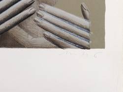 Horst Antes (*1936 Heppenheim - lebt und arbeitet in Karlsruhe, Berlin und Castellina in Chianti / Italien). Deutscher Maler, Grafiker und Bildhauer. Studierte Malerei 1957-59 bei HAP Grieshaber an der Akademie der Bildenden Künste Karlsruhe. Seit 1967 Professor für Malerei an der Akademie Karlsruhe. 1962 Villa Romana Florenz, 1963 Villa Massimo Rom. 1963 Ausstellung der ersten plastischen Kopffüßler-Figur. 1967 Metallplastiken zum Garten der sieben Denkmäler der Lüste anlässlich der Bundesgartenschau für den Botanischen Garten in Karlsruhe. 1968 Gastprofessur an der Hochschule für Bildende Künste Berlin. Seit 1983 Mitglied der Freien Akademie der Künste Hamburg. - Seine monolithisch wirkenden, oft gnomenhaft körperlosen Figuren weisen Ankläge von spätem Kubismus und Surrealismus auf.