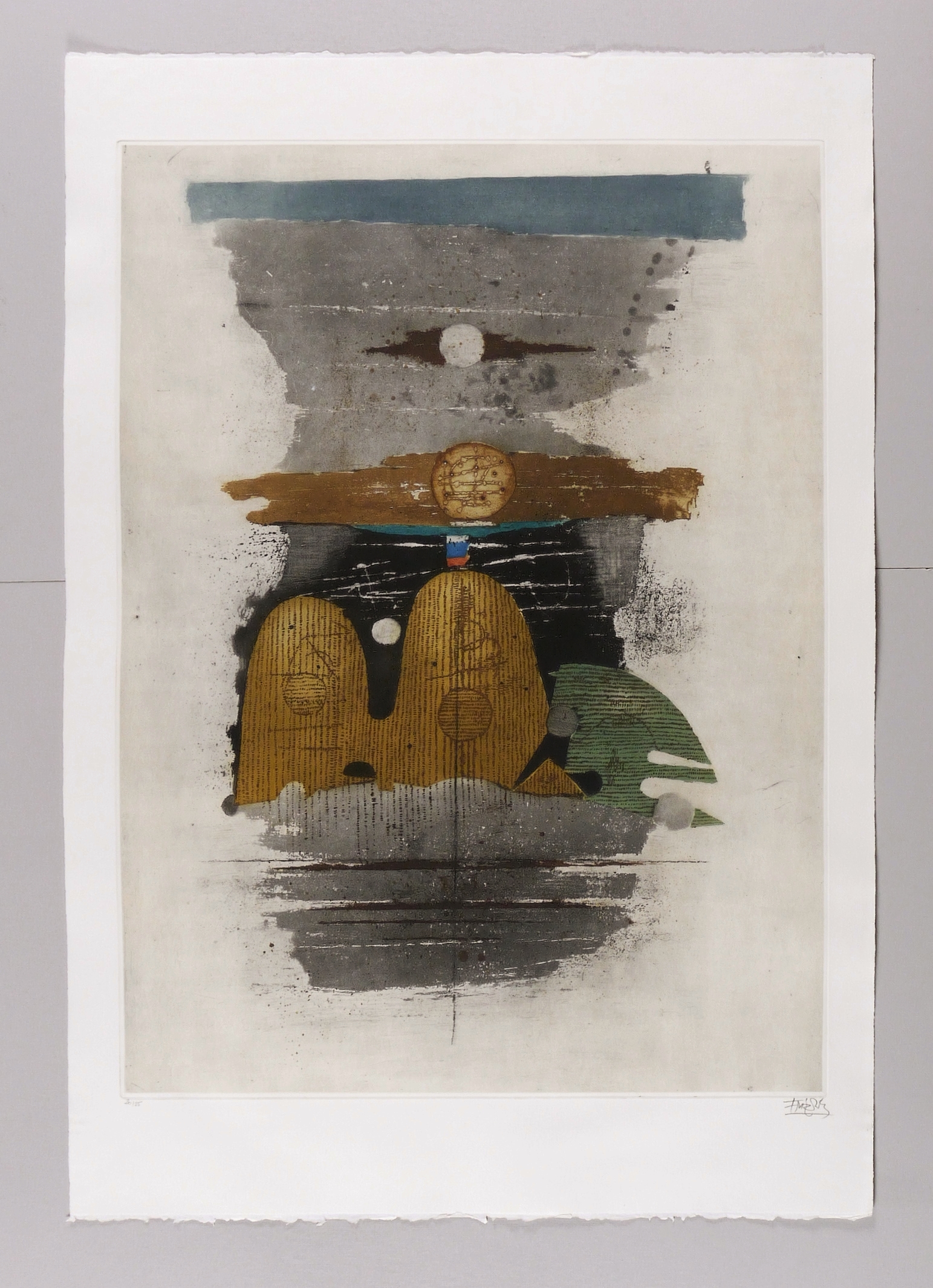 1982. Farbradierung / Aquatinta, in 8 Farben, auf schwerem hellchamois Velin. – Originale Künstlergrafik, von Johnny Friedländer. – Auflage Exemplar Nr. 20/95. – 75,3 x 55,9 cm (Darstellung / Platte), 92 x 64 cm (Blatt).