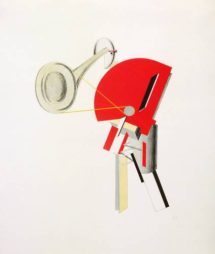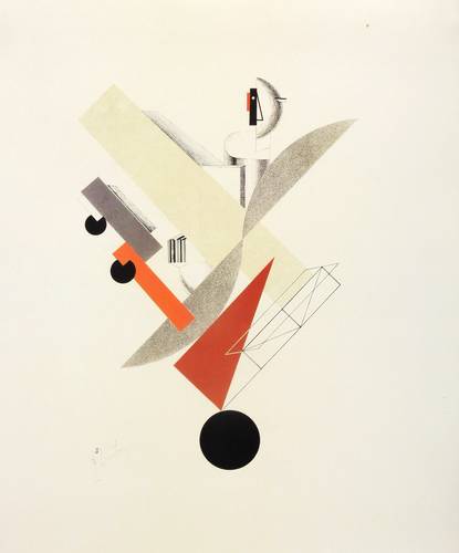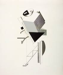El Lissitzky (1890 Potschinok - 1941 Moskau). Russischer Maler, Grafiker, Typograf, Fotograf und Architekt. Prägender Vertreter der russischen Avantgarde und des Konstruktivismus. 1909-14 Studium Architektur und Ingenieurwissenschaften an der Technischen Hochschule Darmstadt, 1915 Diplom in Moskau. 1918 Mitglied der Abteilung für Bildende Künste der Kulturabteilung NARKOMPROS in Moskau. Ab 1919 Lehrer an der Kunsthochschule in Witebsk (neben Kasimir Malewitsch). 1920/21 Leiter der Architekturabteilung der WChUTEMAS in Moskau. 1921-25 längerer Aufenthalt in Deutschland und der Schweiz. Währenddessen gemeinsam mit Ilja Ehrenburg Herausgabe der Kunstzeitschrift "Weschtsch-Objet-Gegenstand" in Berlin, sowie mit Kurt Schwitters Arbeit an der Zeitschrift Merz. 1922 Mitorganisation und -gestaltung der Ersten Russischen Kunstausstellung Berlin mit zahlreichen eigenen Werken. 1925-30 Lehrer an der Moskauer Kunsthochschule Wchutemas in der Abteilung Stahl und Metalle. 1927 Heirat mit Sophie Küppers. 1927/28 Auftrag zur Gestaltung des Abstrakten Kabinetts in der Niedersächsischen Landesgalerie Hannover. 1928 künstlerische Leitung bei der Gestaltung des Sowjet-Pavillons auf der internationalen Presseausstellung Pressa in Köln. 1929 Gestaltung des Sowjetischen Raums auf der Internationalen Ausstellung des Werkbunds Film und Foto. Mitglied der Pariser Künstlervereinigung "Abstraction-Création". Ab 1931 leitender Architekt der ständigen Bauausstellung im Kulturpark Gorki in Moskau. Ab 1932 Mitarbeiter der Zeitschrift "USSR im Bau". 1964 posthume Präsentation auf der documenta III in Kassel. Freundschaften verbanden ihn mit Hans Arp, Kasimir Malewitsch, Jan Tschichold und Willi Baumeister. Sein Schaffen ist deutlich mit der deutschen und holländischen Avantgarde verbunden. Sein konstruktivistischer Symbolismus, sein Konzept des "Proun" (Akronym für "Projekt für die Behauptung des Neuen"), seine Revolutionierung von Typografie und grafischer Gestaltung beeinflussten De-Stijl und das Bauhaus nachhaltig.