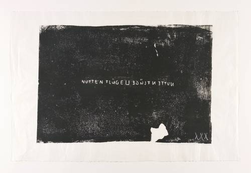 Links unten in Bleistift signiert, nummeriert und datiert: ″Osmarostengrafik Nr. 29/94″. In der Druckform Inschrift und Künstler-Signet. – Der breite unbeschnittene Papierrand etwas griffspurig. Guter Zustand.