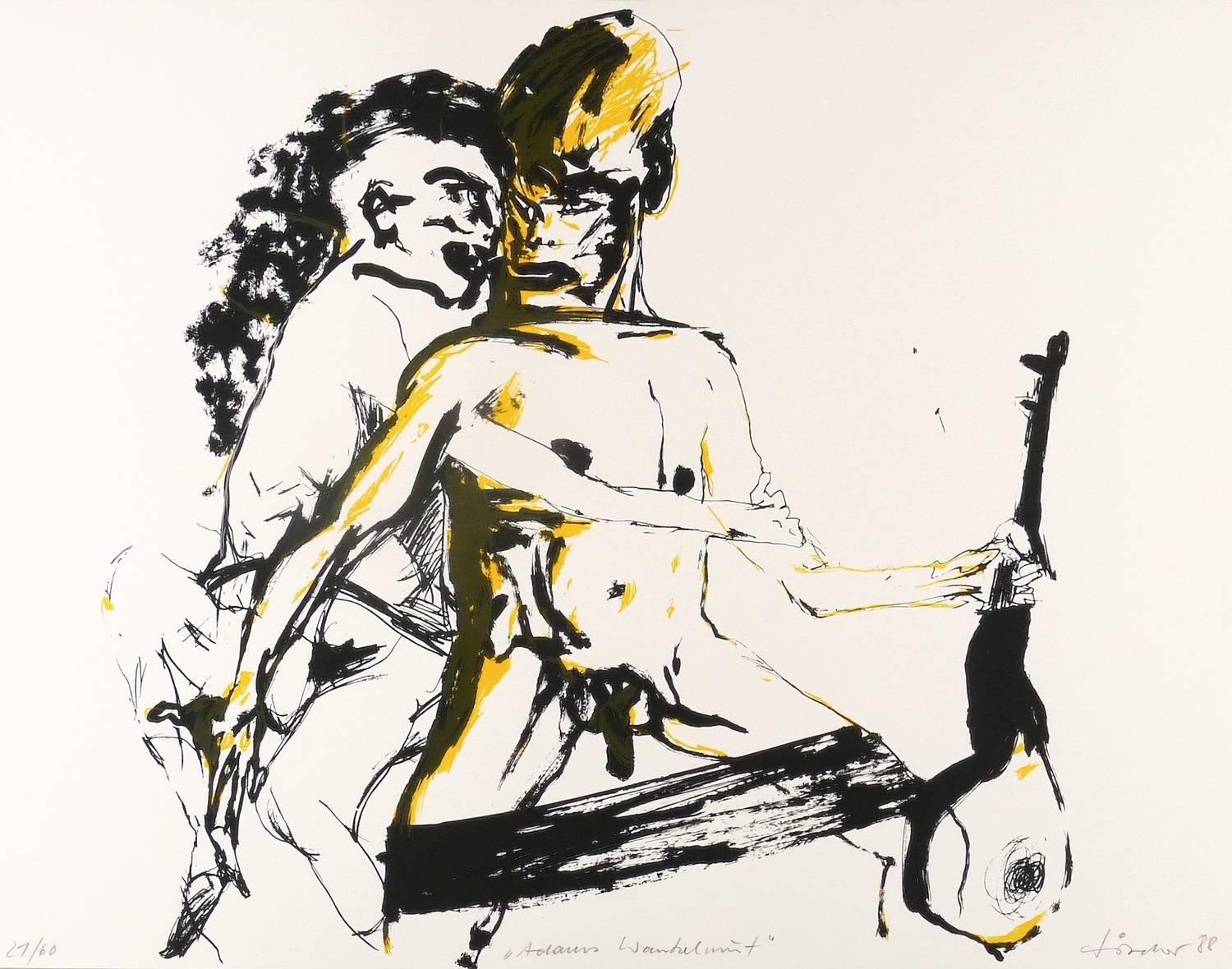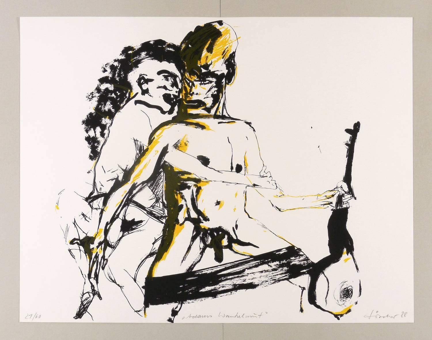 Rechts unten in Bleistift signiert und datiert: ″fischer 88″. Links Auflagenbezeichnung: ″21/60″. Mittig Titel: ″Adams Wankelmut″. – Sehr guter Zustand.