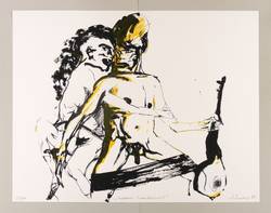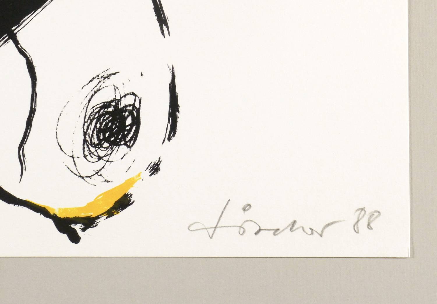 1988. Farbalgrafie / Kreide- & Pinselalgrafie, in Gelb & Schwarz, auf kräftigem weißem Velinkarton. – Originale Künstlergrafik, von Steffen Fischer. – Auflage Exemplar Nr. 21/60. – 69,3 x 70,0 cm (Darstellung / Druckbild), 70 x 90 cm (Blatt).