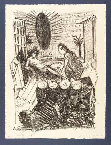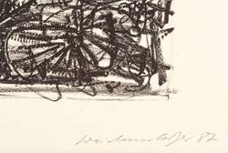 1987. Lithografie / Kreidelithografie, auf chamois Büttenpapier. – Originale Künstlergrafik, von Claus Weidensdorfer. – Auflage Exemplar Nr. 18/100. – 45,8 x 32,8 cm (Darstellung), 48 x 36 cm (Blatt).