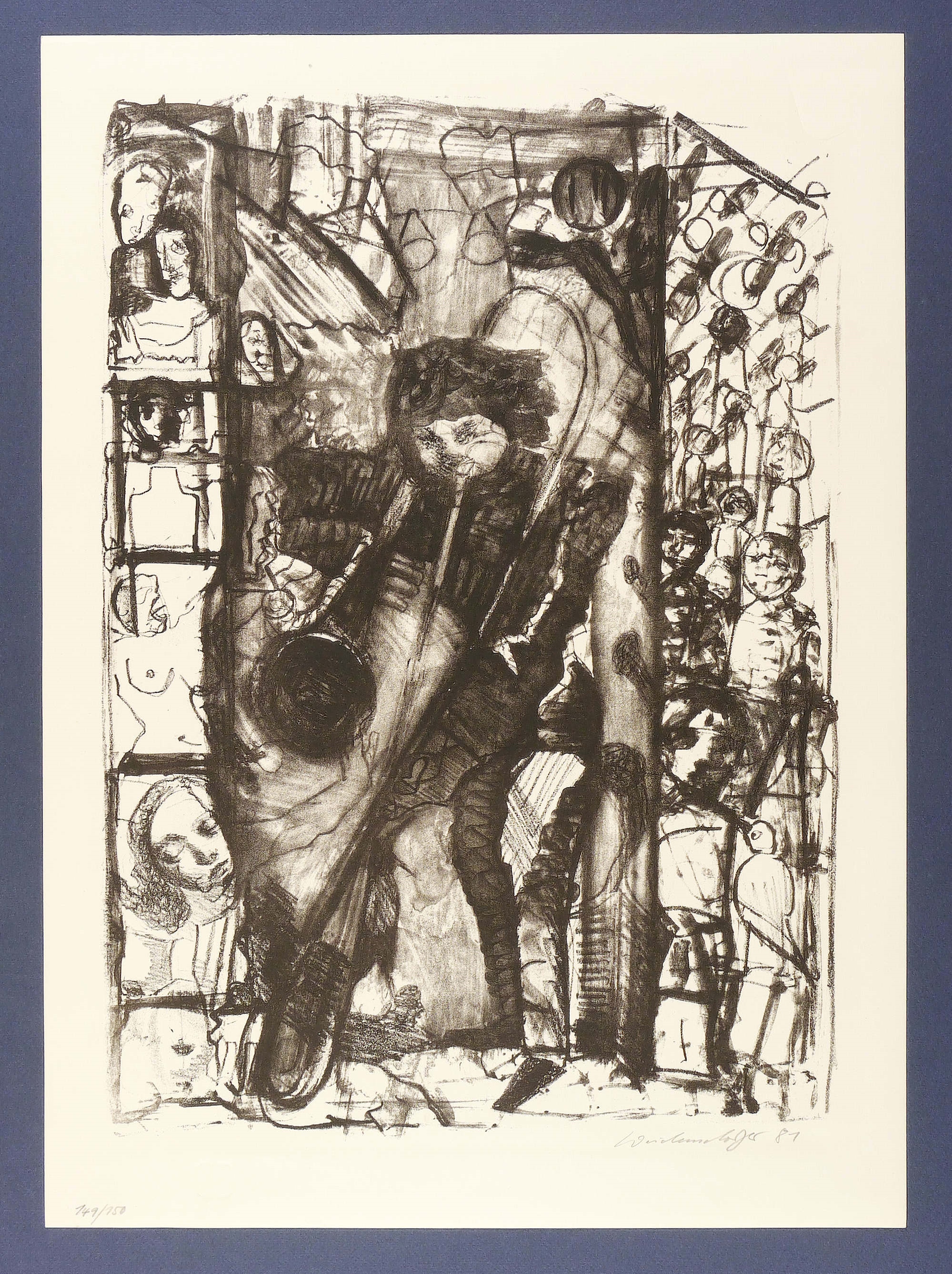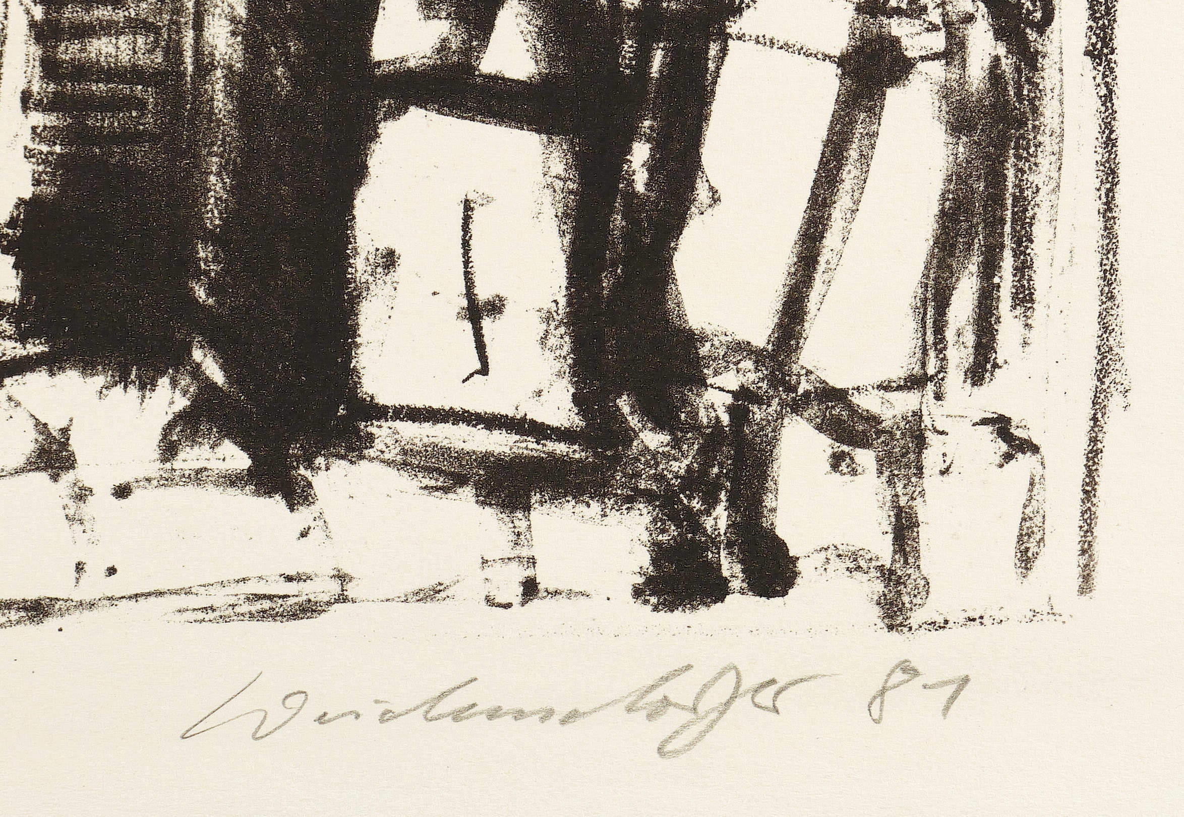 1981. Lithografie / Kreide- & Pinsellithografie, in Schwarz, auf hellem Karton. – Originale Künstlergrafik, von Claus Weidensdorfer. – Auflage Exemplar Nr. 149/150. – 50,8 x 35,8 cm (Darstellung), 58 x 42 cm (Blatt).