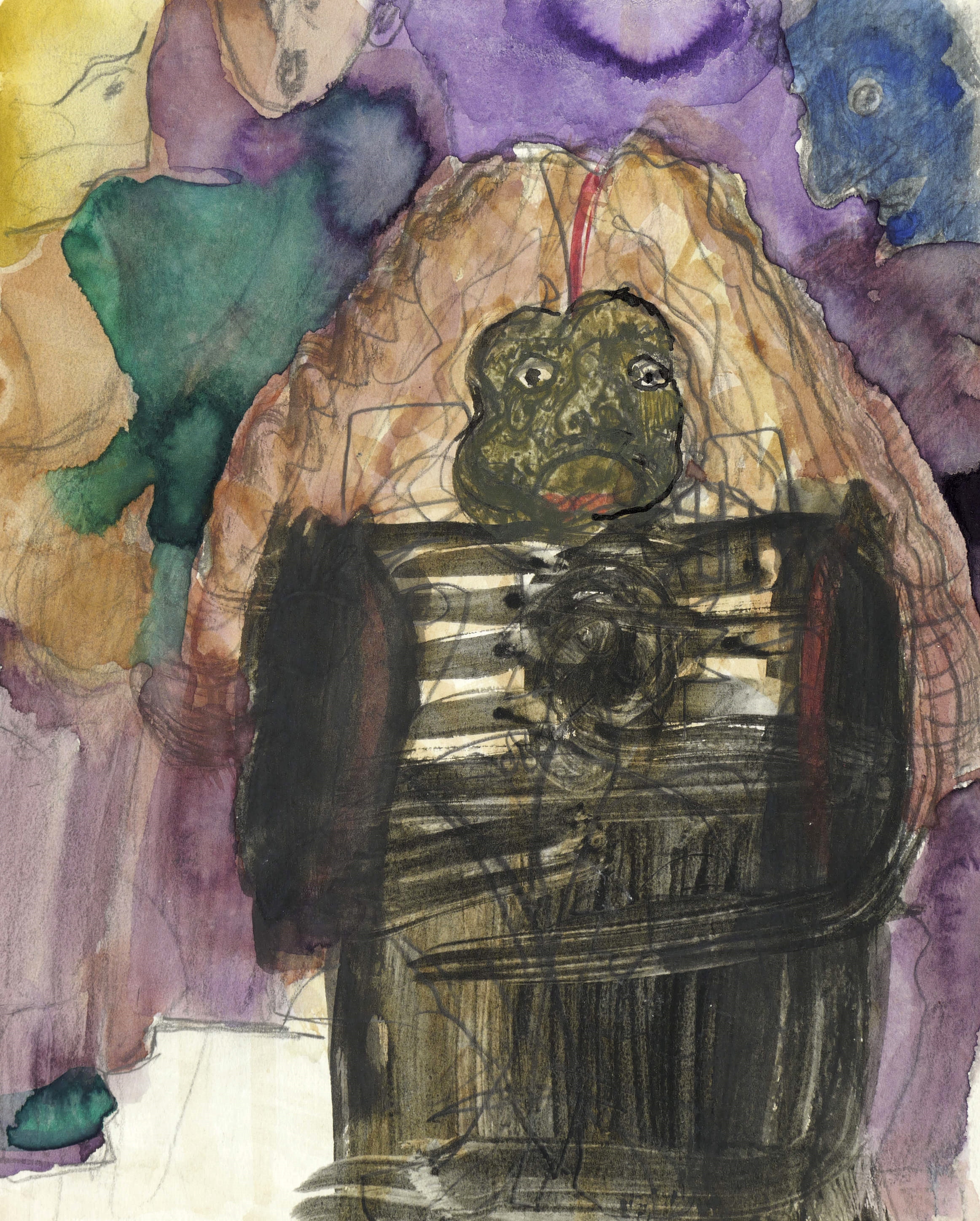 2000. Zeichnung / Aquarell & Tusche, über Bleistift, auf Karton. – Originale Künstlergrafik, von Claus Weidensdorfer. – Unikat. – 19,3 x 15,6 cm (Darstellung / Blatt).