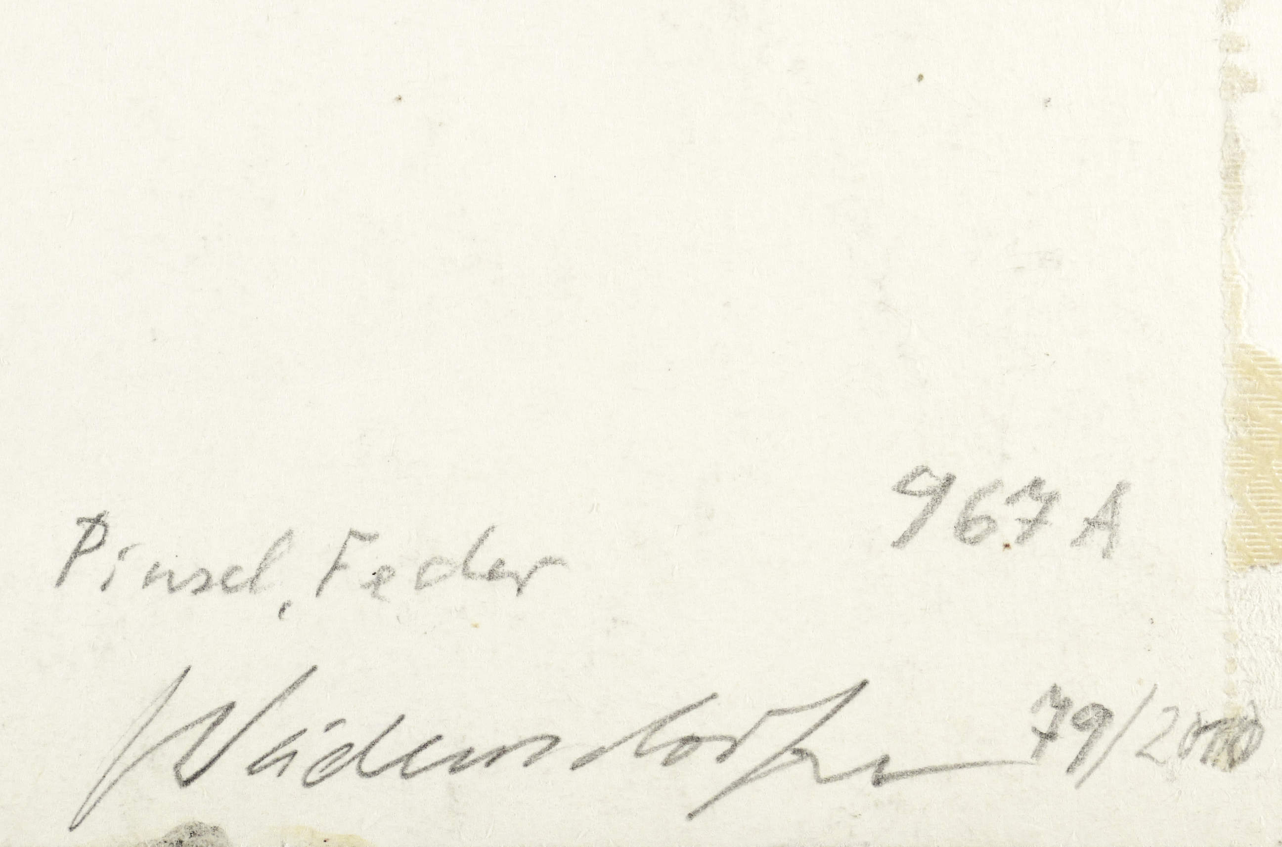 1979/2010. Zeichnung / Feder- & Pinselzeichnung, in schwarzer Tusche, auf Karton. – Originale Künstlergrafik, von Claus Weidensdorfer. – Unikat. – 24,0 x 21,0 cm (Darstellung / Blatt).