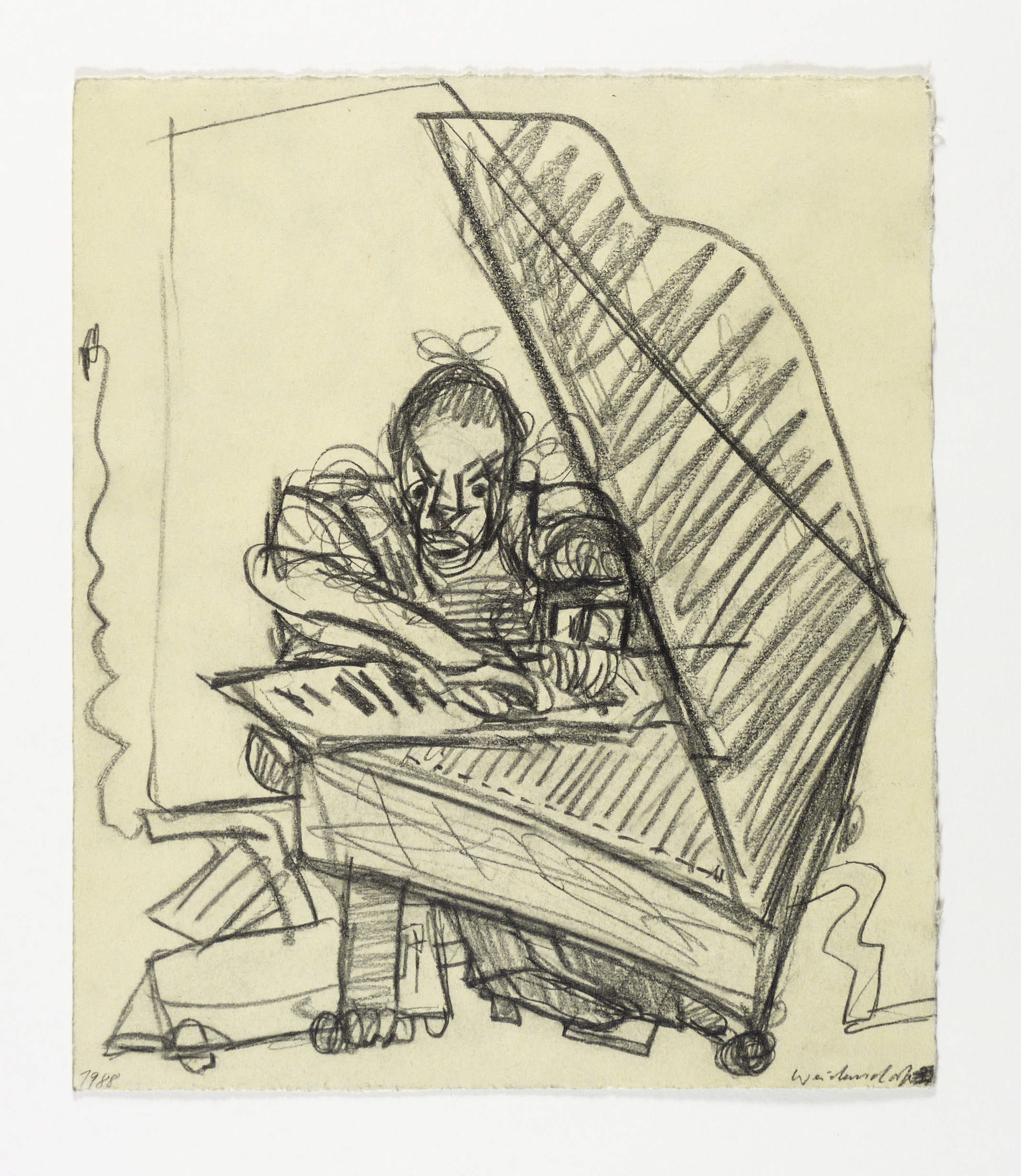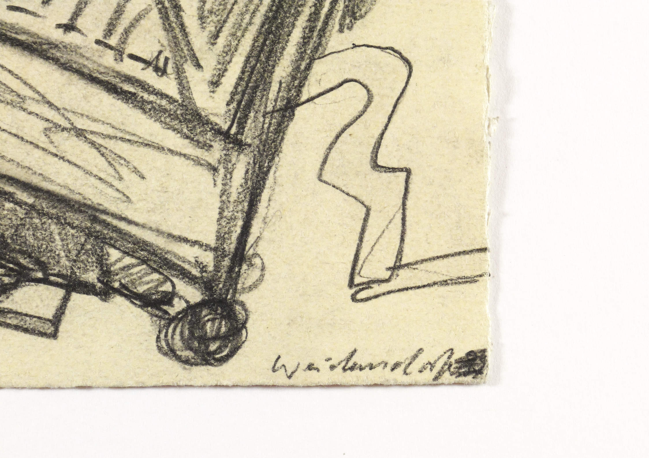 1988. Zeichnung / Bleistiftzeichnung, auf hellgelbem Büttenpapier. – Originale Künstlergrafik, von Claus Weidensdorfer. – Unikat. – 30,4 x 25,8 cm (Darstellung / Blatt).