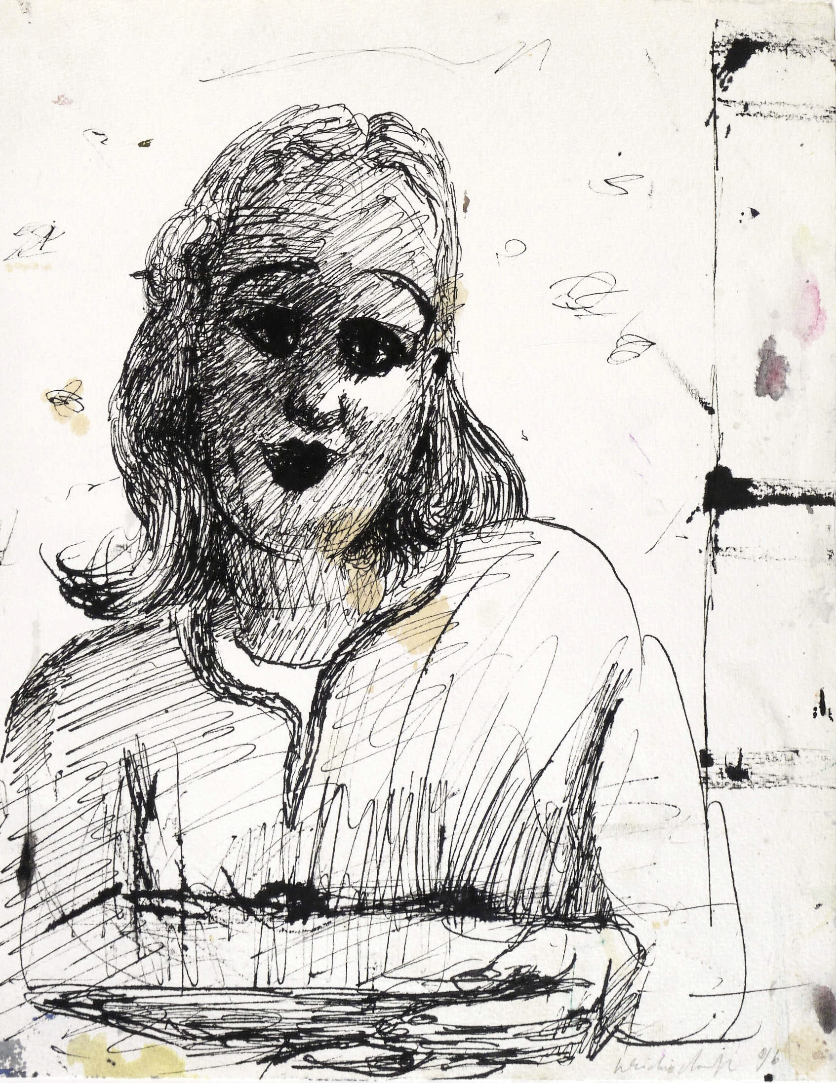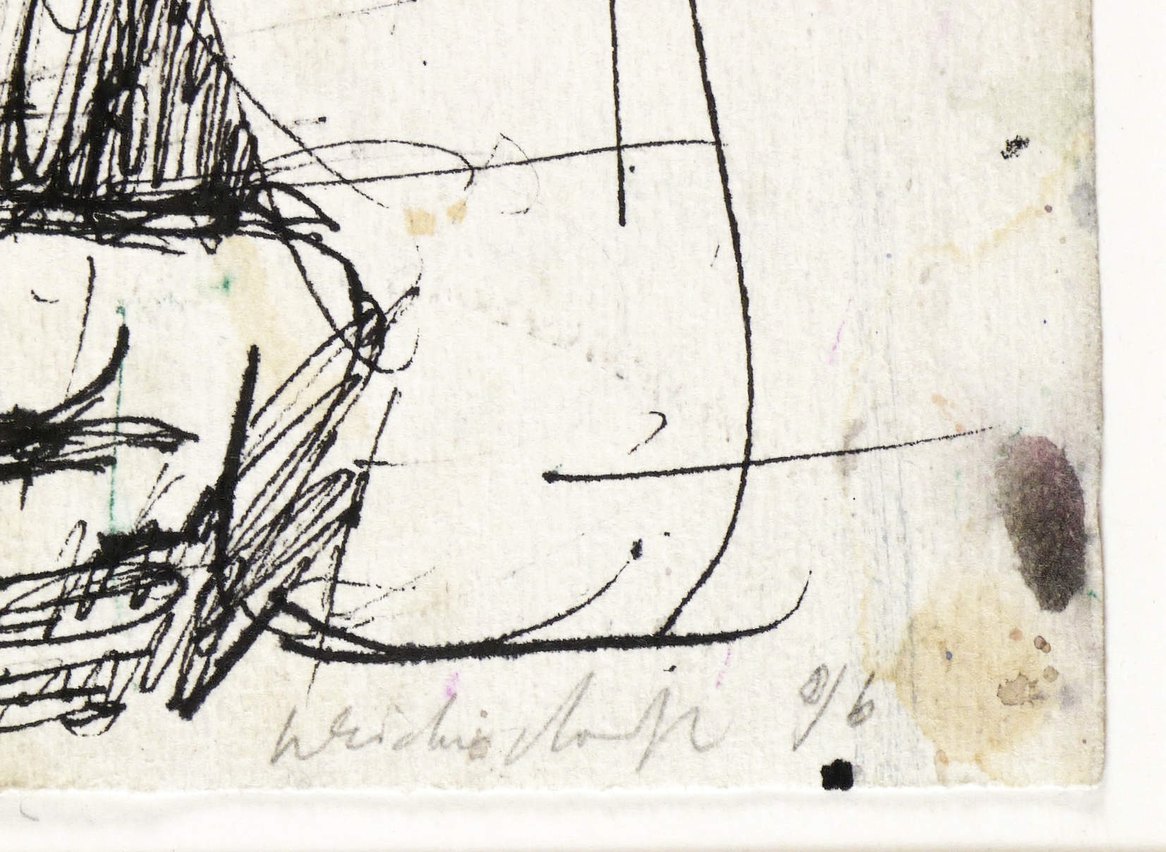 1996. Zeichnung / Federzeichnung, in schwarzer Tusche, auf Büttenpapier. – Originale Künstlergrafik, von Claus Weidensdorfer. – Unikat. – 35,0 x 27,5 cm (Darstellung / Blatt).