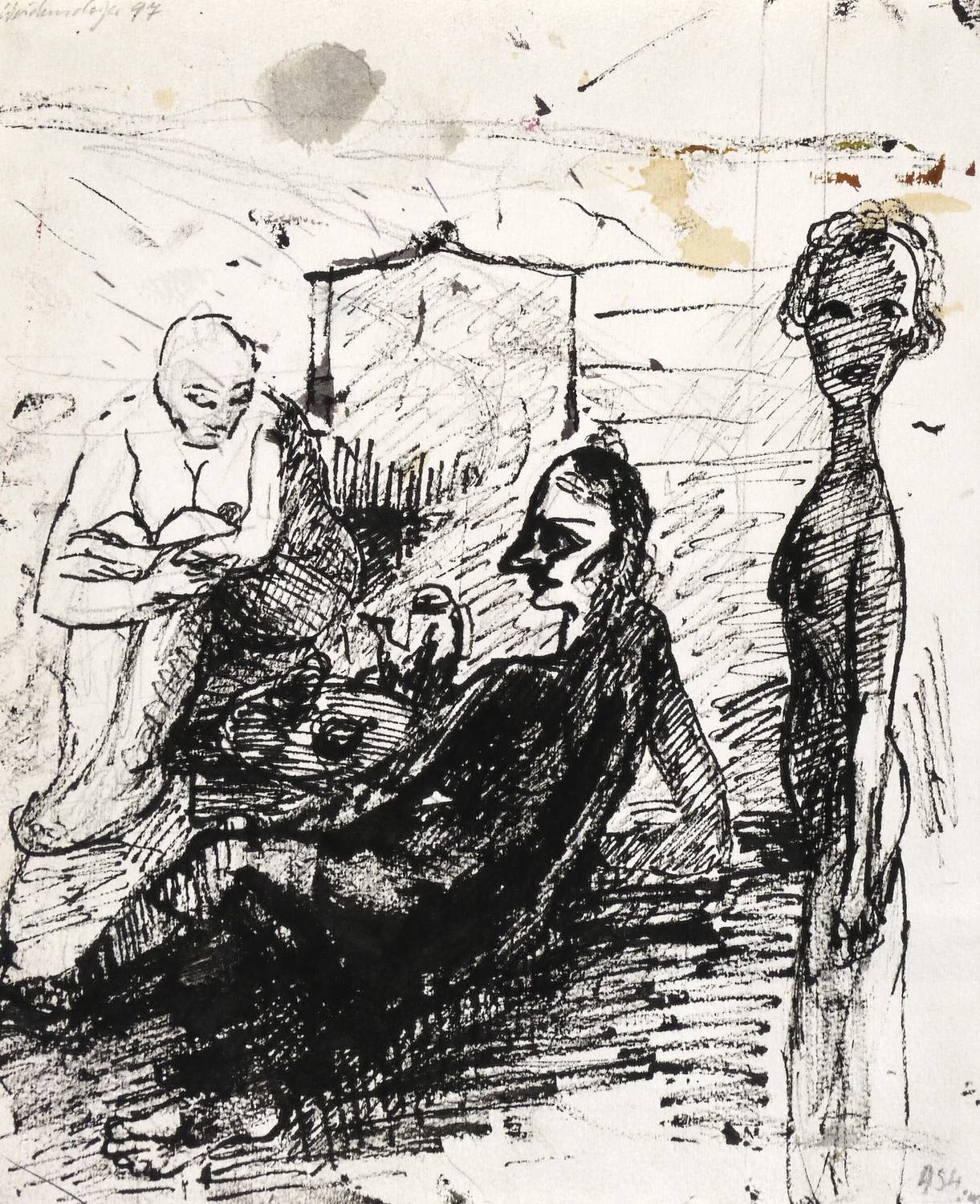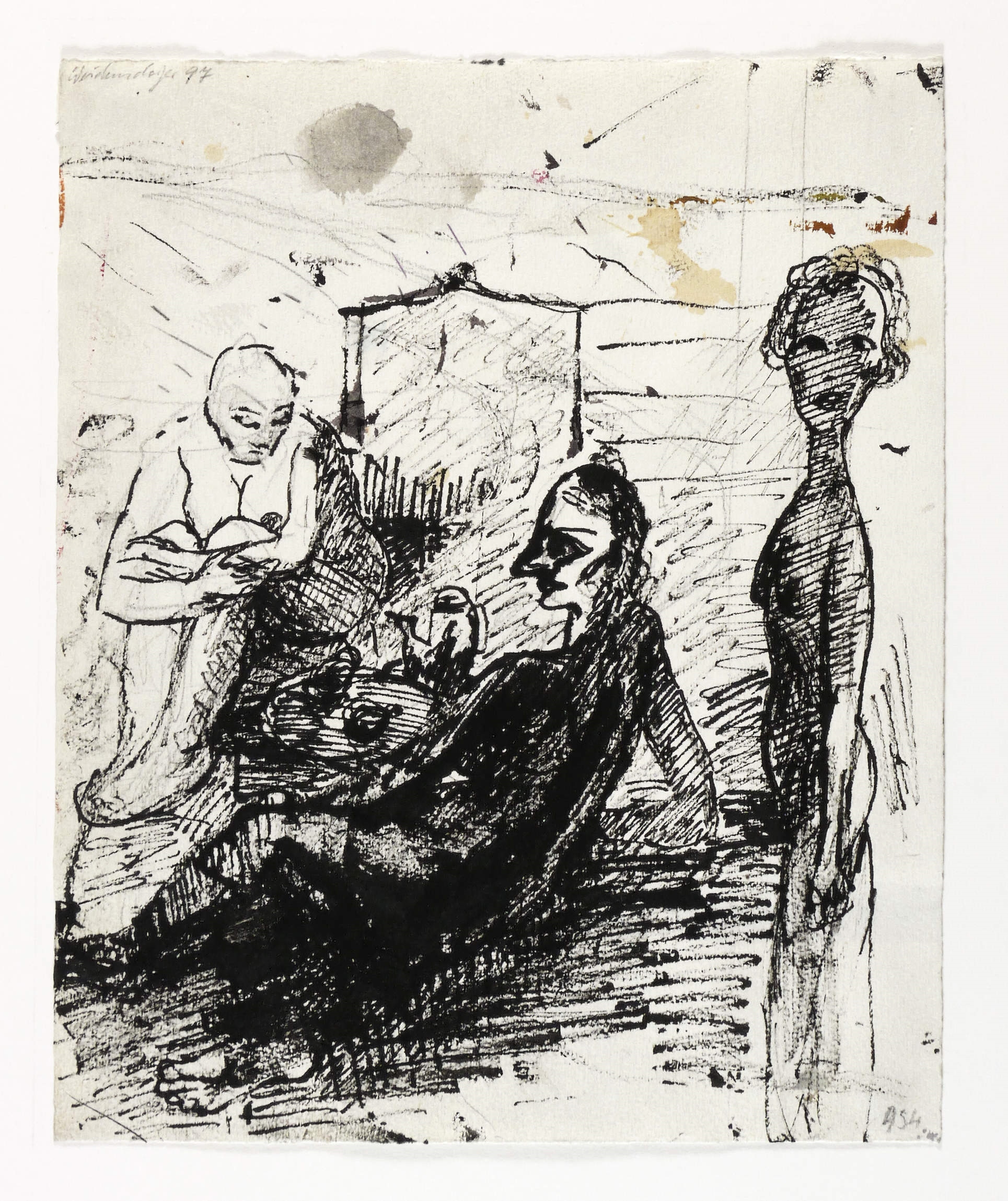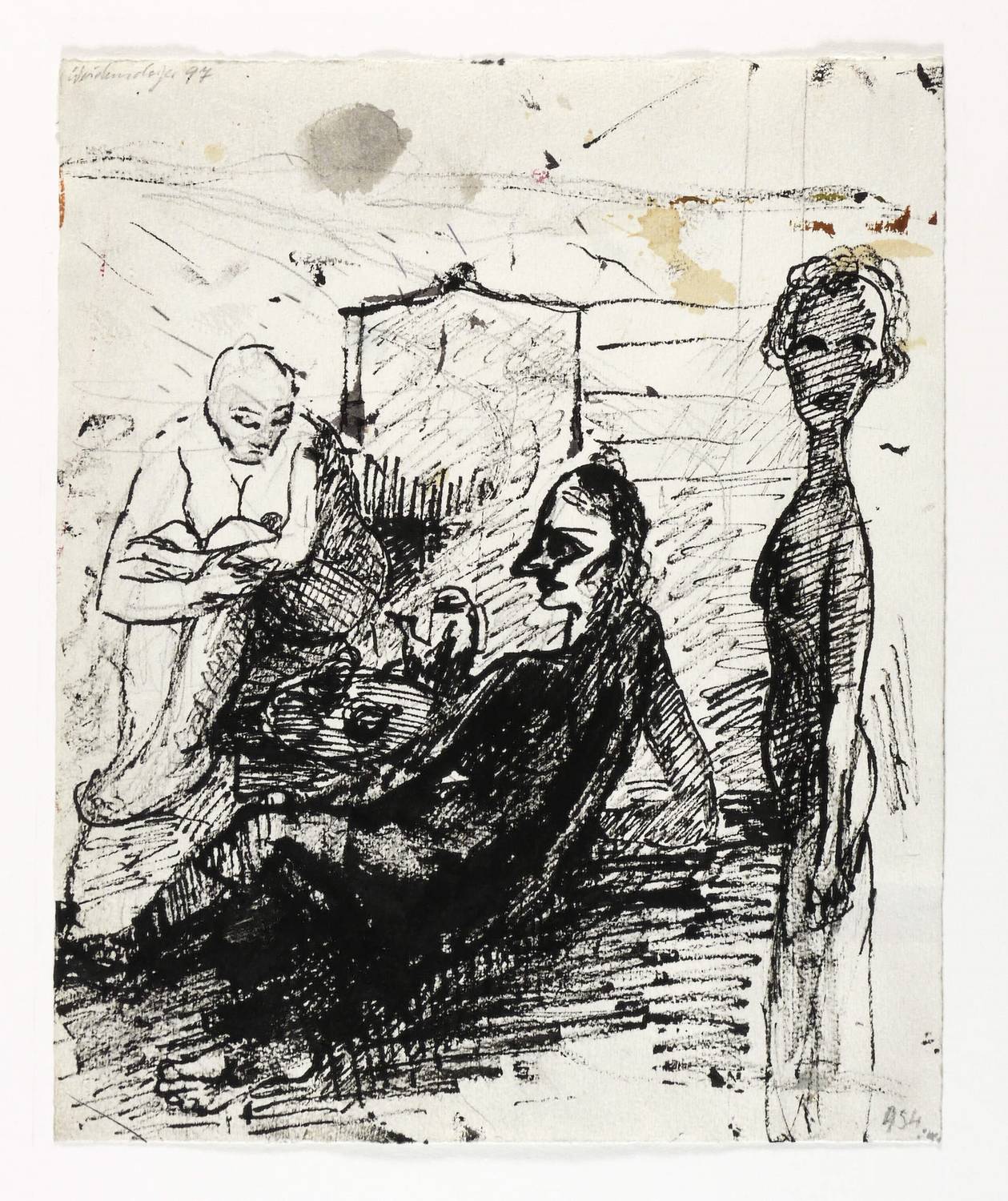 1997. Zeichnung / Federzeichnung, in schwarzer Tusche, auf Büttenpapier. – Originale Künstlergrafik, von Claus Weidensdorfer. – Unikat. – 34,0 x 27,5 cm (Darstellung / Blatt).