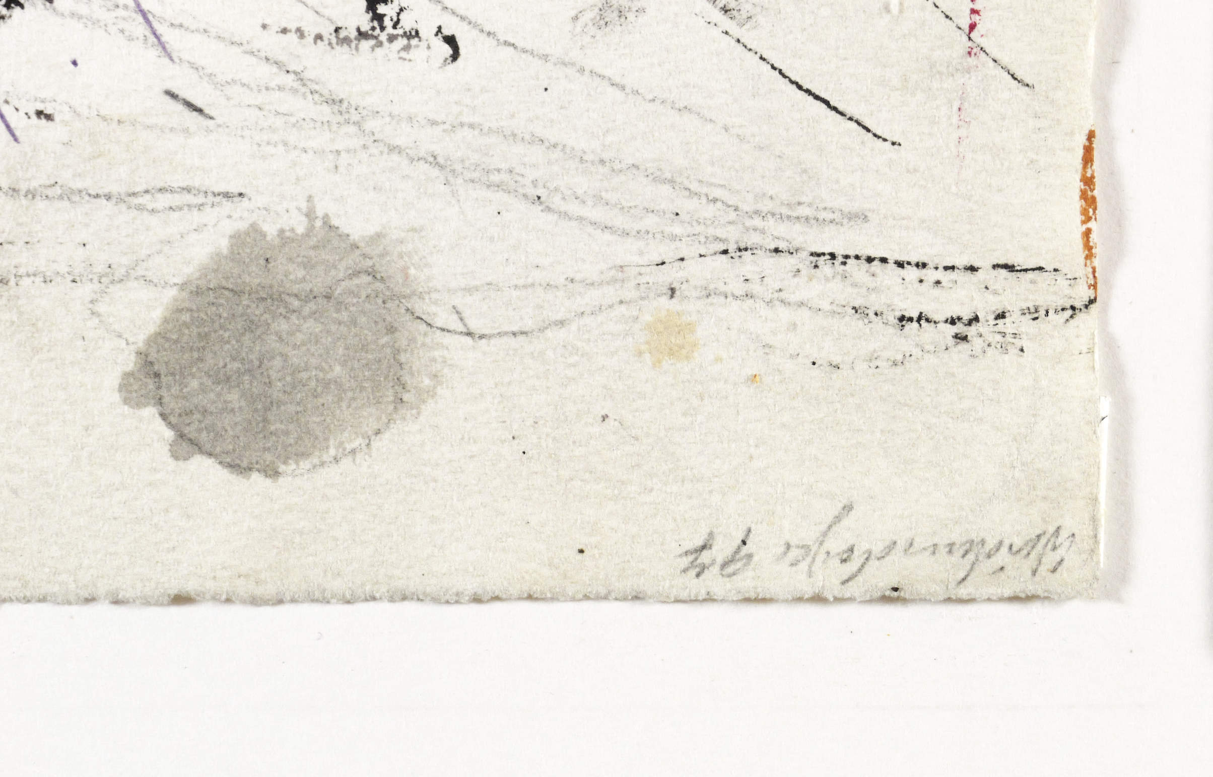 Links oben in Bleistift signiert und datiert. Verso signiert, datiert und betitelt. – Vom Künstler original auf Trägerblatt aufgesetzt und in Passepartout montiert. Guter Zustand.