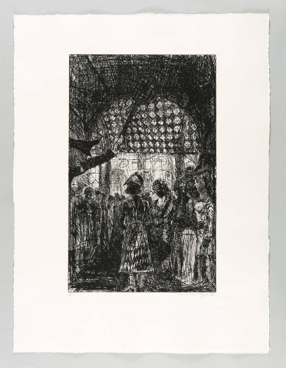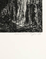 1984. Radierung / Strichätzung & Kaltnadel, in Schwarz, auf schwerem hellchamois Hahnemühle-Bütten. – Originale Künstlergrafik, von Claus Weidensdorfer. – Auflage Exemplar Nr. 4/30. – 49,8 x 31,0 cm (Darstellung / Platte), 71 x 53 cm (Blatt).