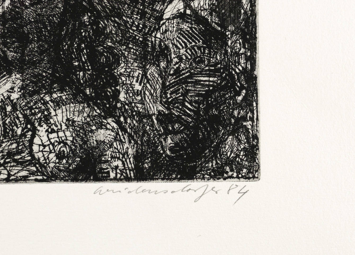 1984. Radierung / Strichätzung & Kaltnadel, in Schwarz, auf schwerem hellchamois Hahnemühle-Bütten. – Originale Künstlergrafik, von Claus Weidensdorfer. – Auflage Exemplar Nr. 4/30. – 49,8 x 33,5 cm (Darstellung / Platte), 71 x 53 cm (Blatt).