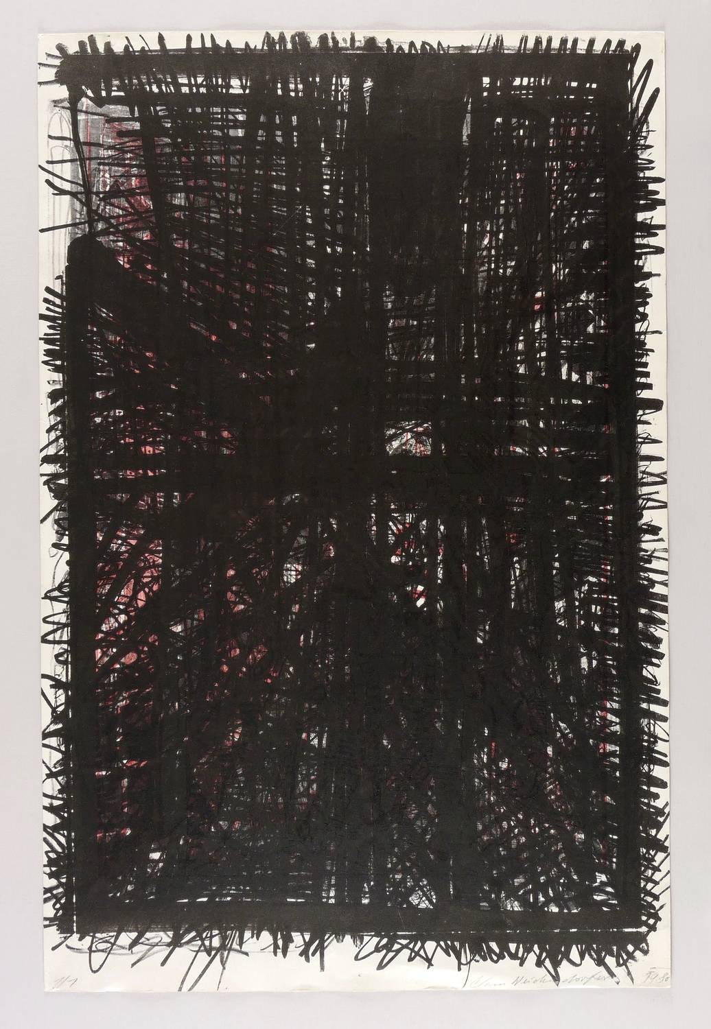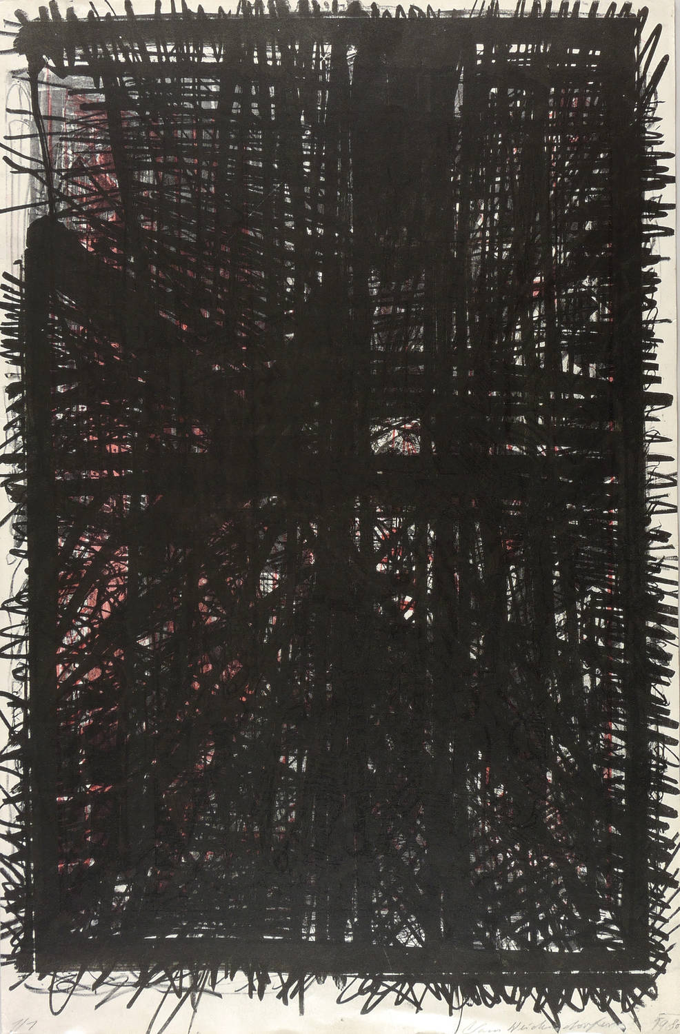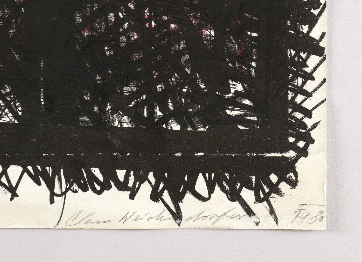 1980. Farblithografie / Kreide- & Pinsellithografie, in 2 Farben, auf Hahnemühle-Büttenkarton. – Originale Künstlergrafik, von Claus Weidensdorfer. – Auflage Exemplar Nr. 1/1. – 76,5 x 50,0 cm (Darstellung / Blatt).
