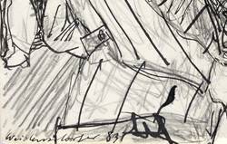 1983. Zeichnung / Bleistift & Tusche, auf leichtem hellgelbem Velin. – Originale Künstlergrafik, von Claus Weidensdorfer. – Unikat. – 20,8 x 14,5 cm (Darstellung / Blatt).