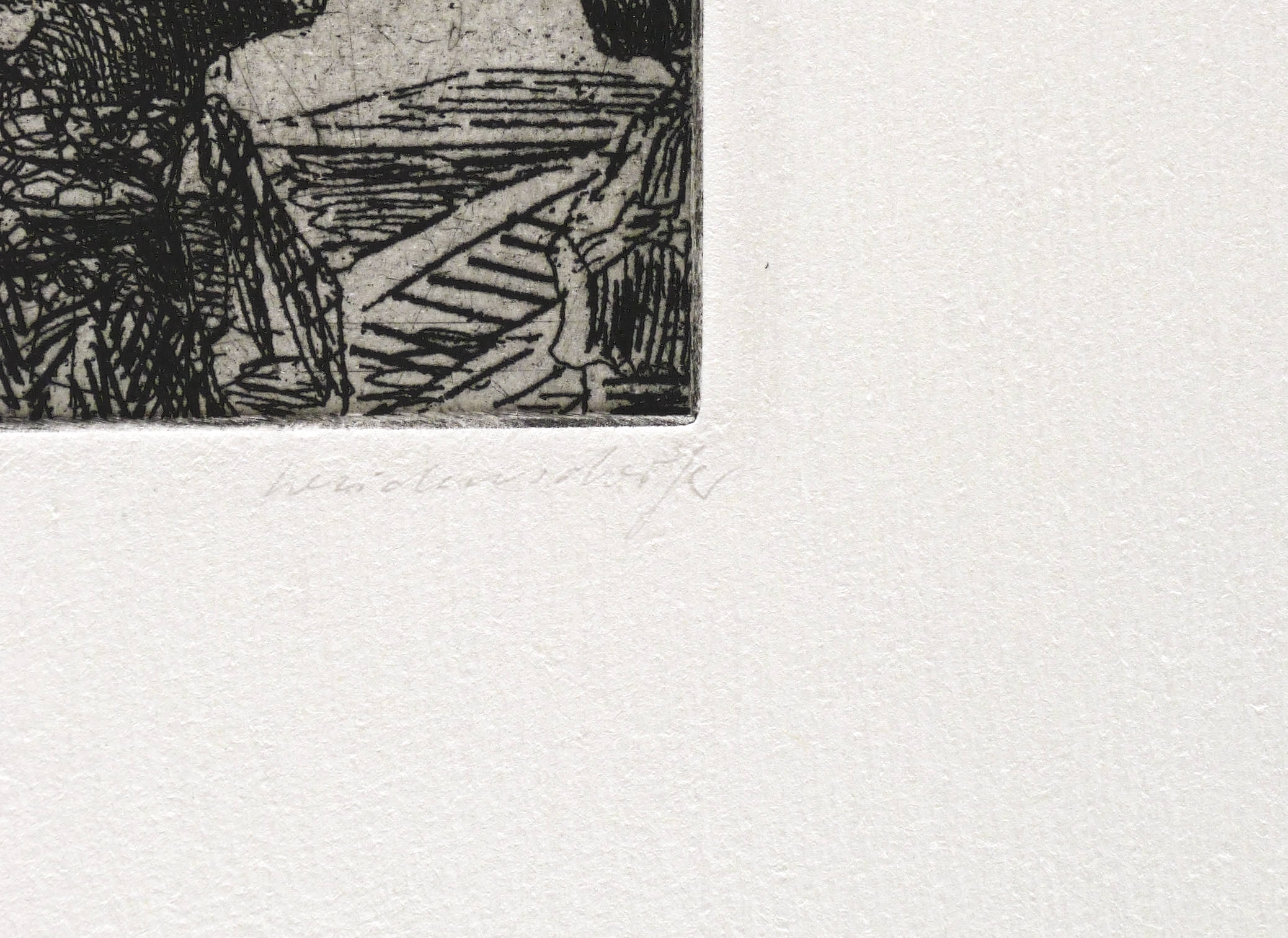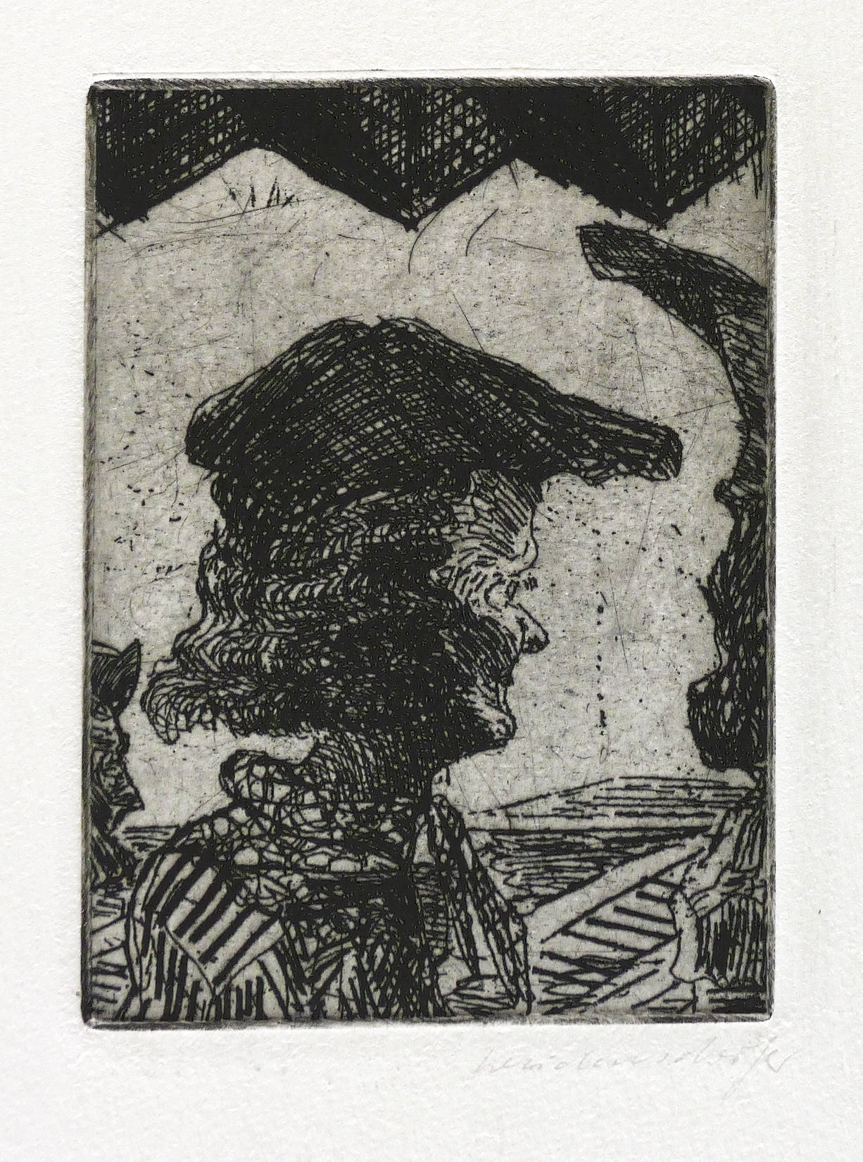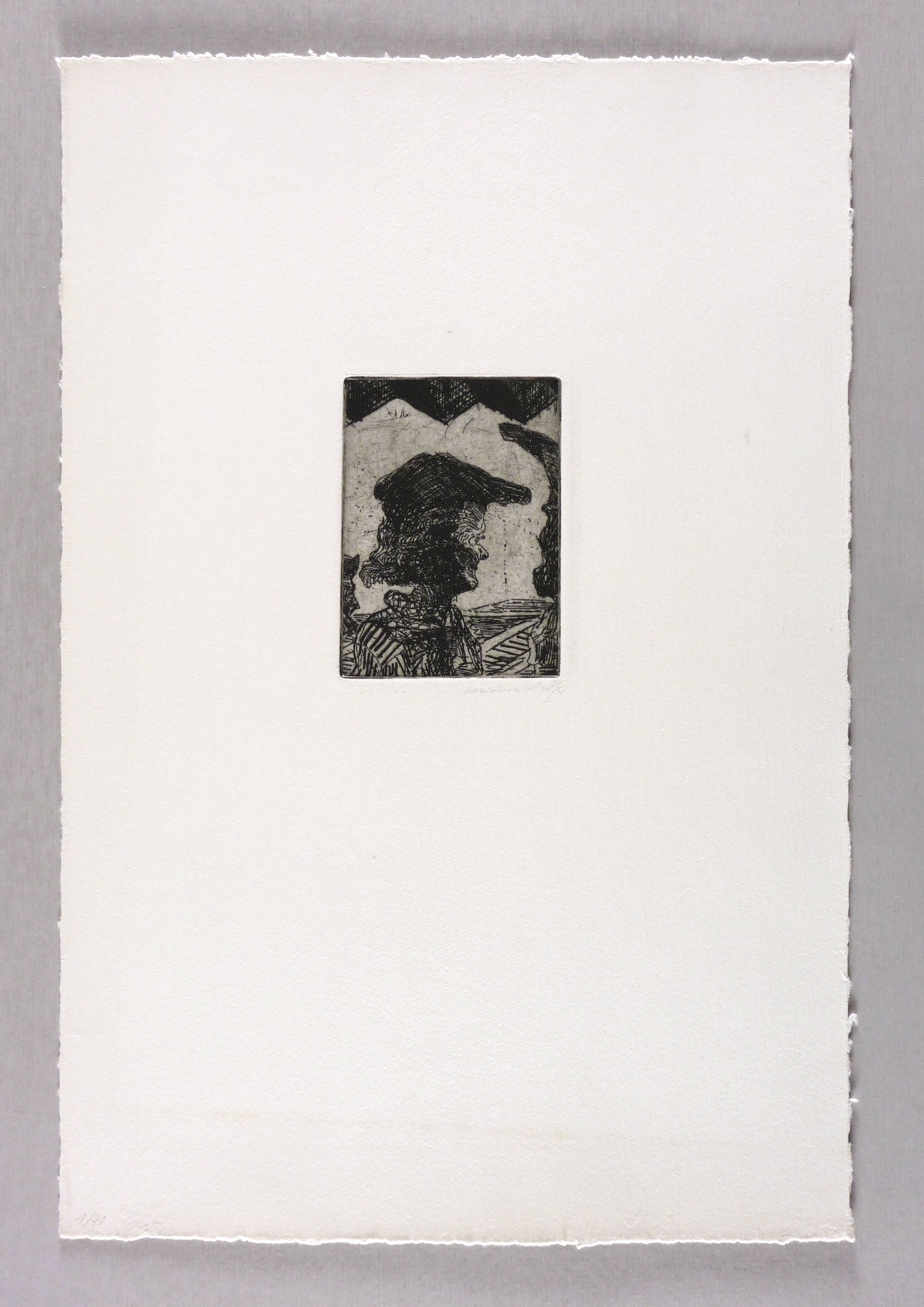 1982. Radierung / Strichätzung, in Schwarz, auf hellchamois Hahnemühle. – Originale Künstlergrafik, von Claus Weidensdorfer. – Auflage Exemplar Nr. 1/40. – 10,2 x 7,4 cm (Darstellung / Platte), 40 x 27 cm (Blatt).