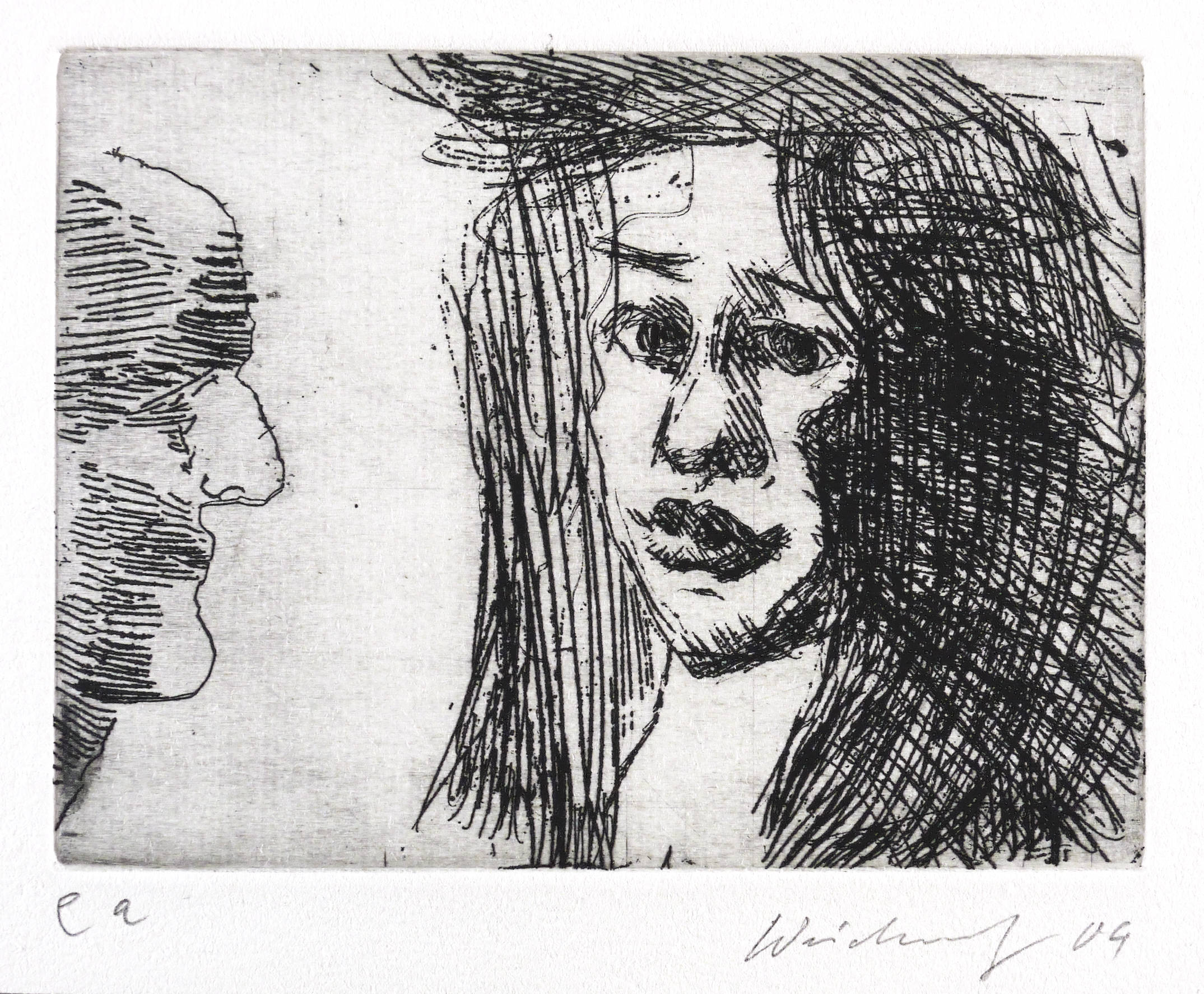 2004. Radierung / Strichätzung & Reservage, in Schwarz, auf hellchamois Bütten. – Originale Künstlergrafik, von Claus Weidensdorfer. – Künstlerexemplar (e.a.). – 9,0 x 11,9 cm (Darstellung / Platte), 12 x 21 cm (Blatt).