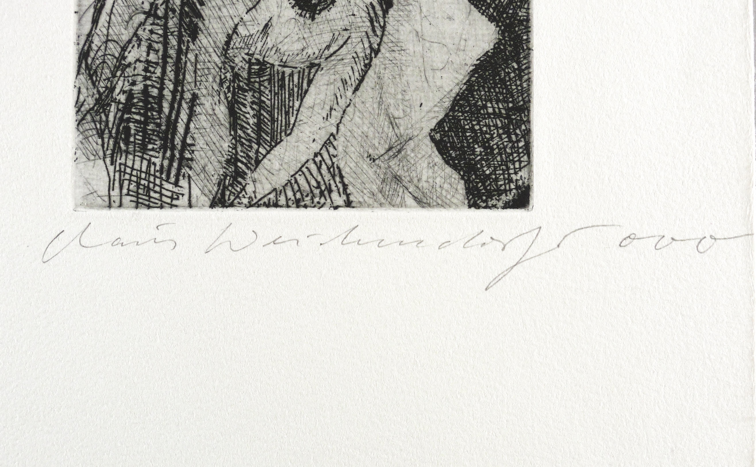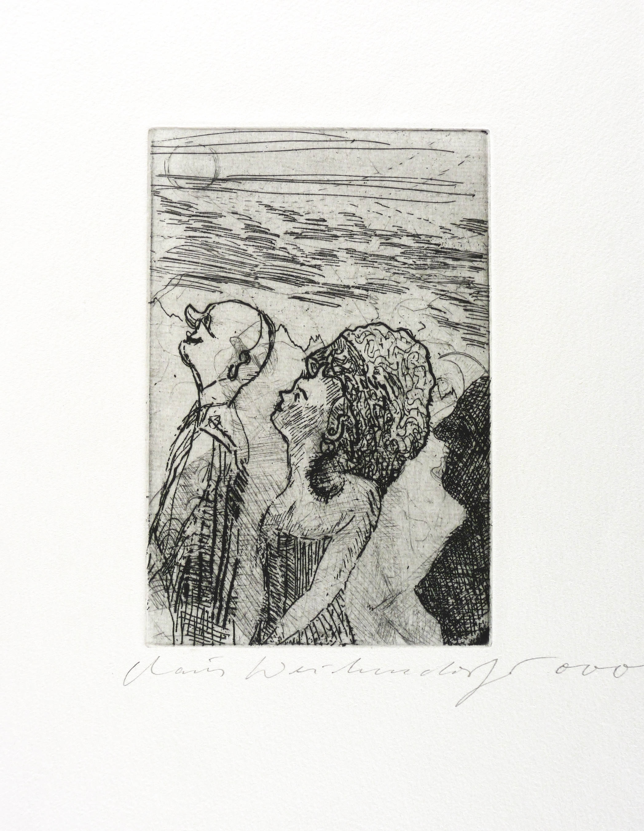 2000. Radierung / Strichätzung, in Schwarz, auf hellchamois Bütten. – Originale Künstlergrafik, von Claus Weidensdorfer. – Künstlerexemplar (e.a.). – 15,0 x 9,9 cm (Darstellung / Platte), 30 x 20 cm (Blatt).
