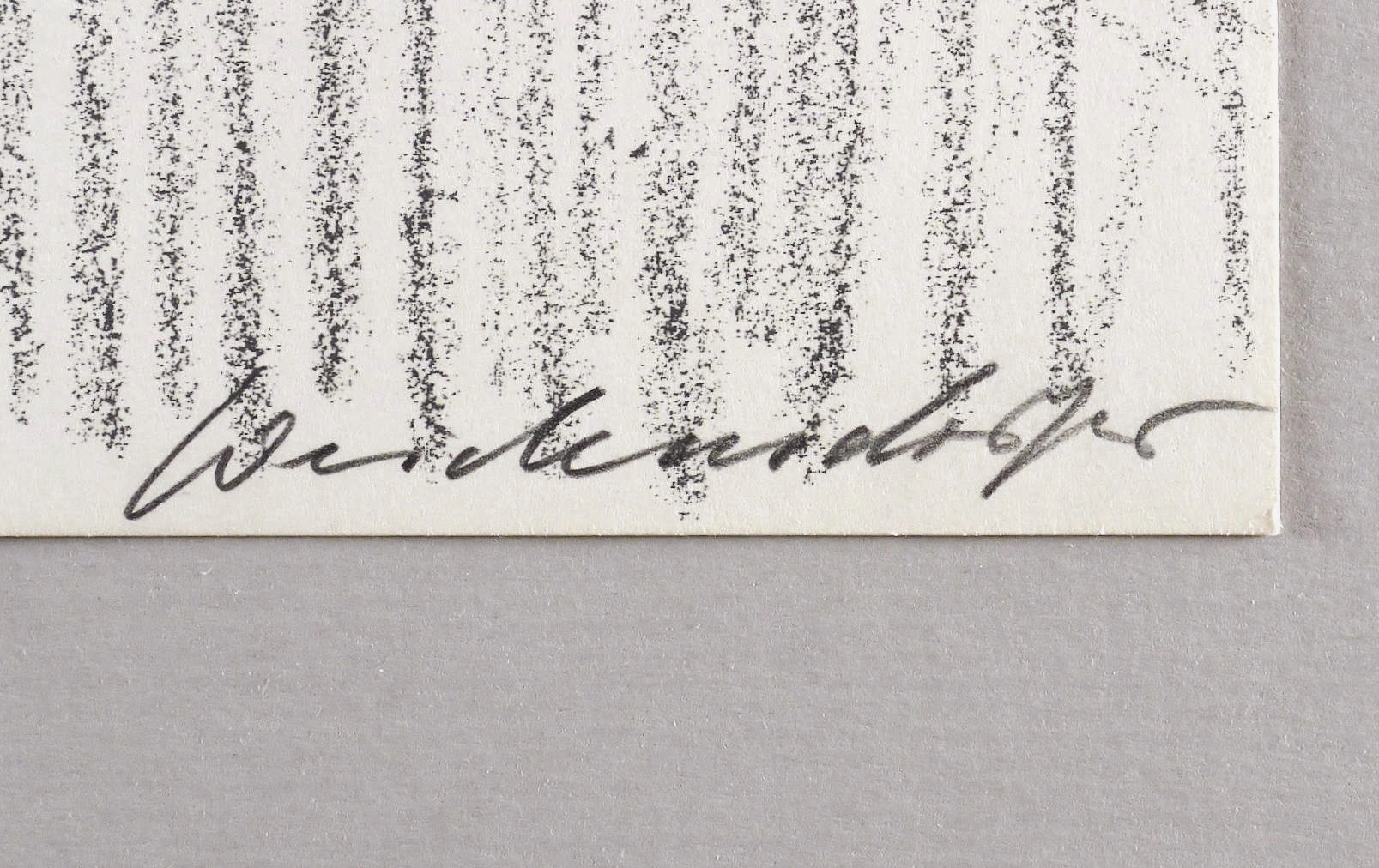 Rechts unten in Bleistift signiert: ″Weidensdorfer″. – Originalgrafische vierteilige Klappkarte. Randloser Druck. – 3 originale vertikale Faltungen. Geringe Lagerspuren. Guter Zustand.