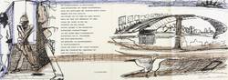 Rechts unten in Bleistift signiert: ″Weidensdorfer″. Im Druck Gedichttext: ″die blumenverkäufer im granittunnel / sind kellerkinder mit nassen streichhölzern / unter den stahlrippen der kreuzung brennt nichts / (...)″. – Originalgrafische vierteilige Klappkarte. Randloser Druck. – 3 originale vertikale Faltungen. Geringe Lagerspuren. Guter Zustand.