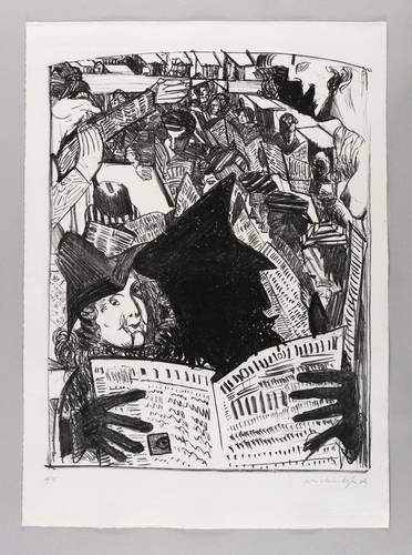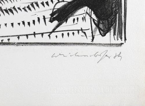 1984. Lithografie / Kreidelithografie, in Schwarz, auf hellchamois Hahnemühle. – Originale Künstlergrafik, von Claus Weidensdorfer. – Auflage Exemplar Nr. 0/15 (Druckerexemplar). – 61,3 x 47,1 cm (Darstellung / Druckbild), 73 x 53 cm (Blatt).
