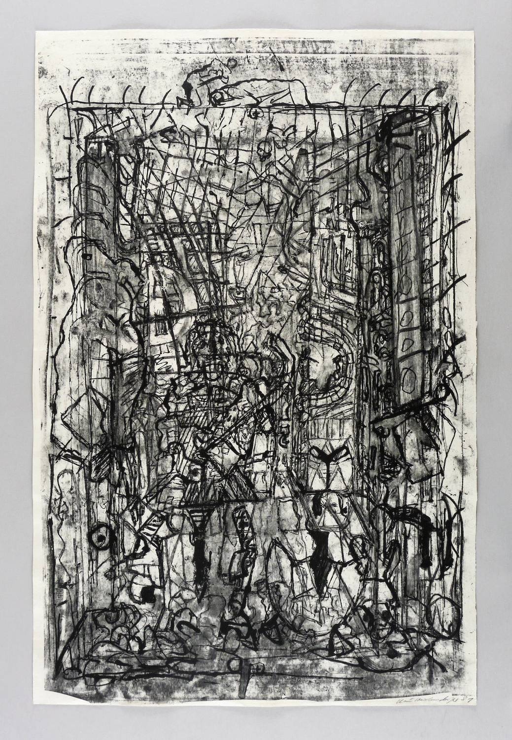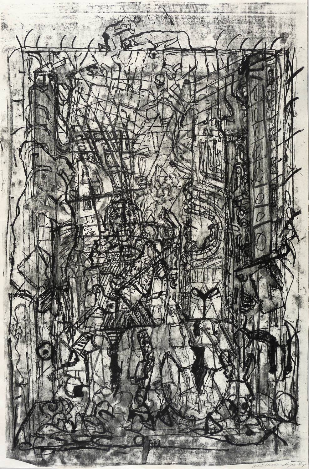 1981. Lithografie / Kreide- & Pinsellithografie, in Schwarz, auf hellchamois Velinkarton. – Originale Künstlergrafik, von Claus Weidensdorfer. – Druckerexemplar. – 75,0 x 49,2 cm (Darstellung / Druckbild), 76 x 51 cm (Blatt).