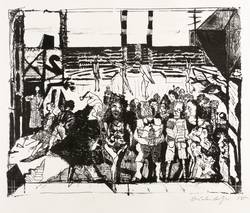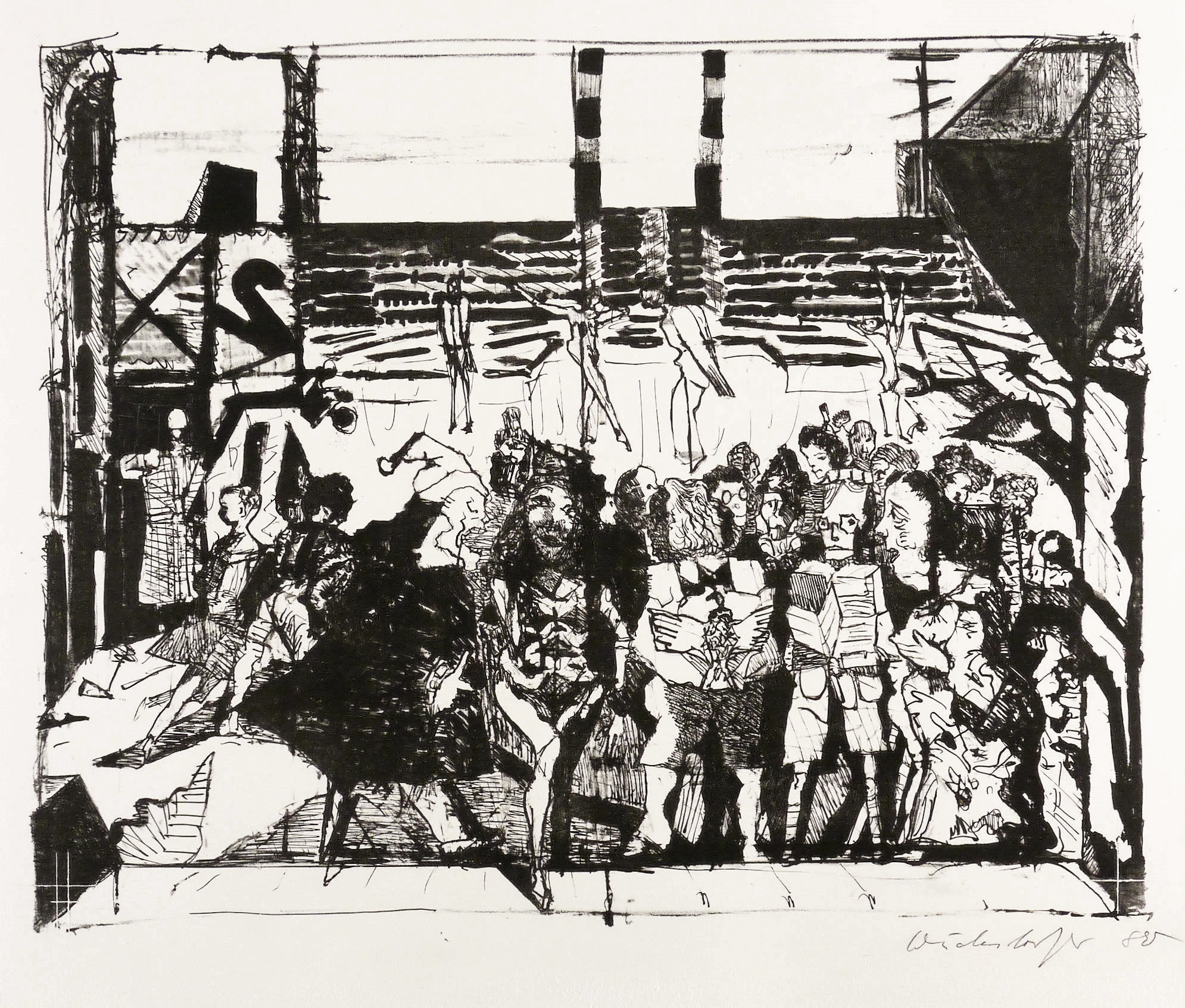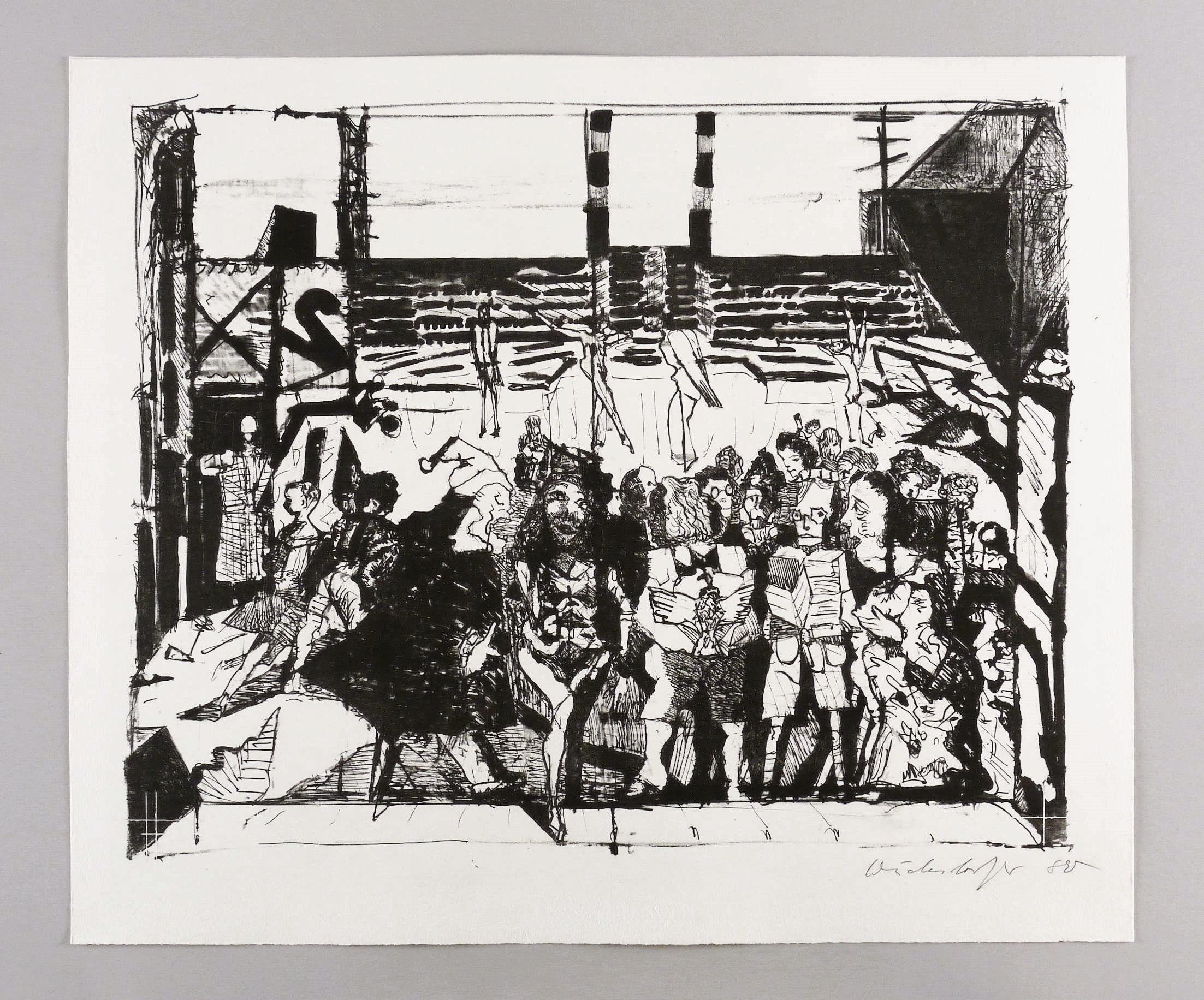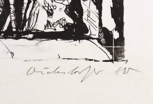 1980. Lithografie / Feder- & Pinsellithografie, in Schwarz, auf hellchamois Weißenborn. – Originale Künstlergrafik, von Claus Weidensdorfer. – Druckerexemplar. – 42,5 x 53,0 cm (Darstellung / Druckbild), 50 x 60 cm (Blatt).