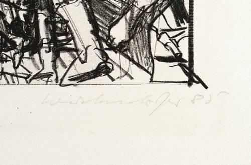 Rechts unten in Bleistift signiert und datiert: ″Weidensdorfer 85″. In der Blattecke links unten Auflagenbezeichnung: ″00/16″. – Nicht bei Muschter. – Sehr guter Zustand.