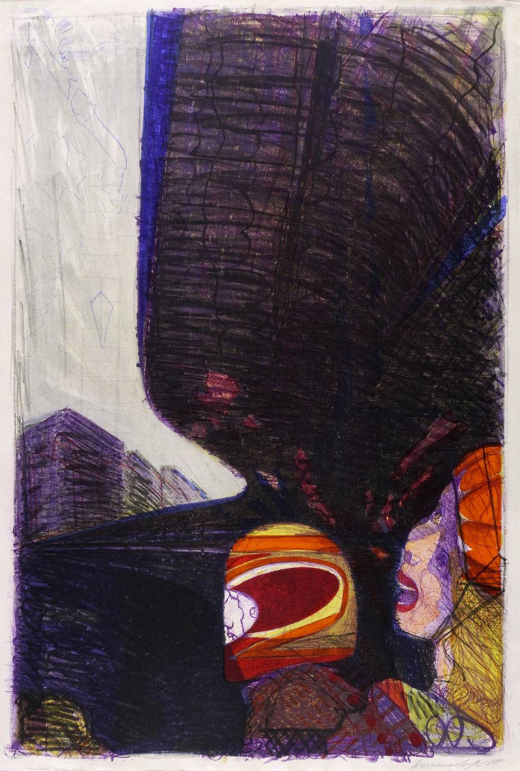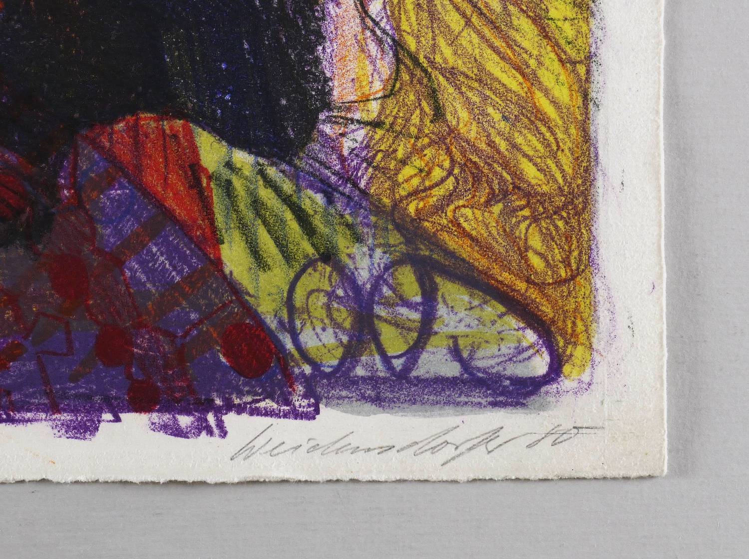 1980. Farblithografie / Kreide- & Pinsellithografie, in 7 Farben, auf hellchamois Velin. – Originale Künstlergrafik, von Claus Weidensdorfer. – Druckerexemplar. – 76,5 x 51,0 cm (Darstellung / Druckbild), 79 x 53 cm (Blatt).