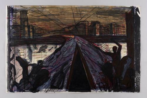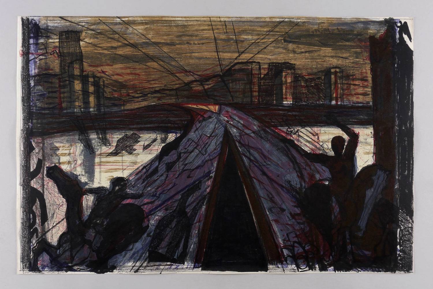 1980. Farblithografie / Kreide-, Feder- & Pinsellithografie, in 6 Farben, auf hellchamois Velin. – Originale Künstlergrafik, von Claus Weidensdorfer. – Druckerexemplar. – 59,7 x 76,3 cm (Darstellung / Blatt).