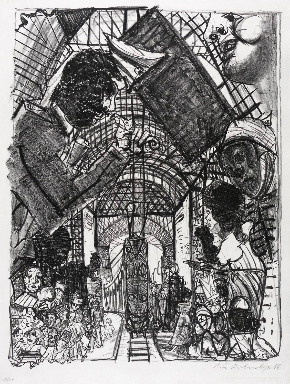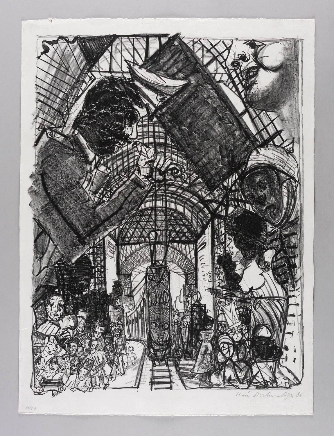 1985. Lithografie / Kreidelithografie, in Schwarz, auf hellchamois Hahnemühle. – Originale Künstlergrafik, von Claus Weidensdorfer. – Auflage Exemplar Nr. 0/21 (Druckerexemplar). – 64,5 x 50,0 cm (Darstellung / Druckbild), 72 x 53 cm (Blatt).