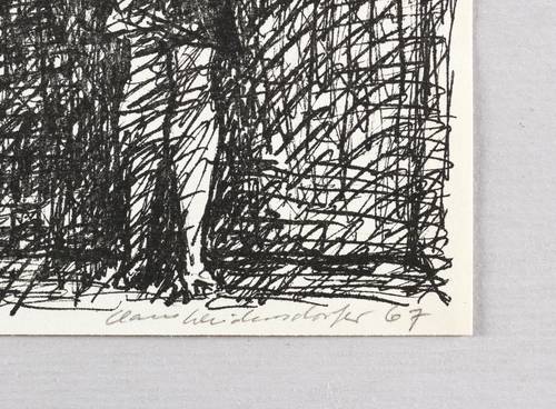 1967. Lithografie / Federlithografie, in Schwarz, auf leichtem hellchamois Velin. – Originale Künstlergrafik, von Claus Weidensdorfer. – 21,2 x 15,0 cm (Darstellung / Druckbild), 21,6 x 15,3 cm (Blatt).