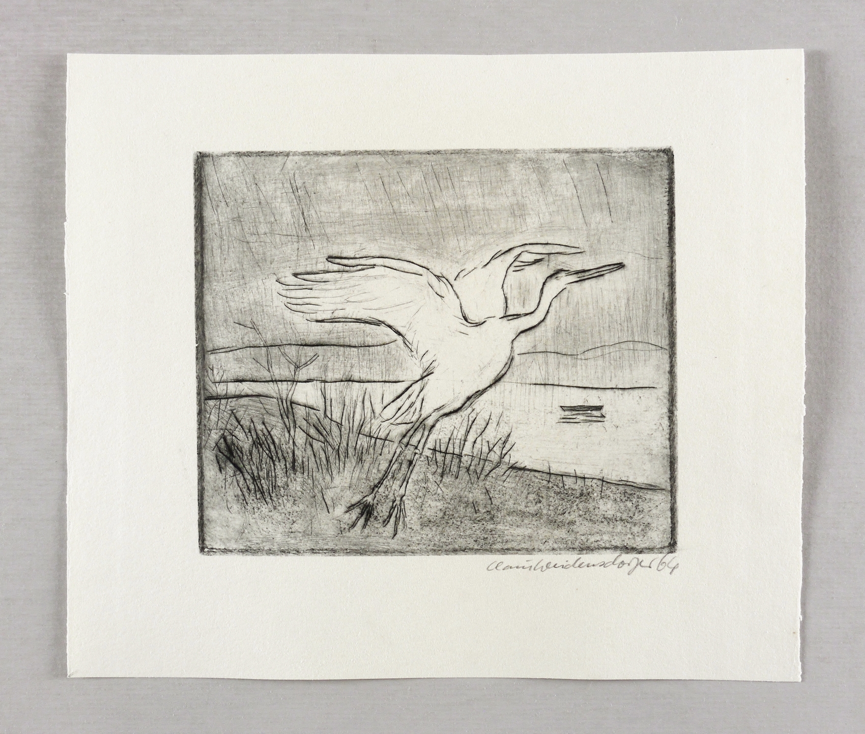 Rechts unten in Bleistift signiert und datiert: ″Weidensdorfer 64″. – Nicht bei Muschter. – Wahrscheinlich nur eine Auflage von 20 Exemplaren. – Selten. – Sehr guter Zustand.
