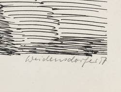 1957. Zinkografie / Federzinkografie, in Schwarz, auf hellgelbem Velinkarton. – Originale Künstlergrafik, von Claus Weidensdorfer. – 31,5 x 41,2 cm (Darstellung / Druckbild), 38 x 50 cm (Blatt).