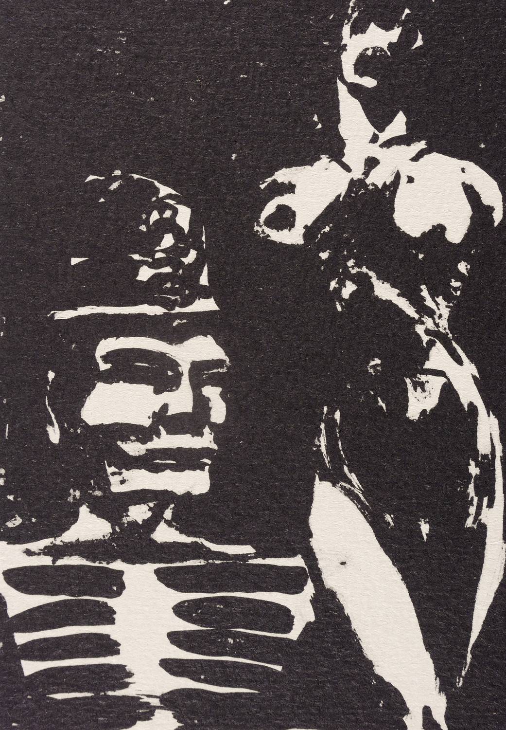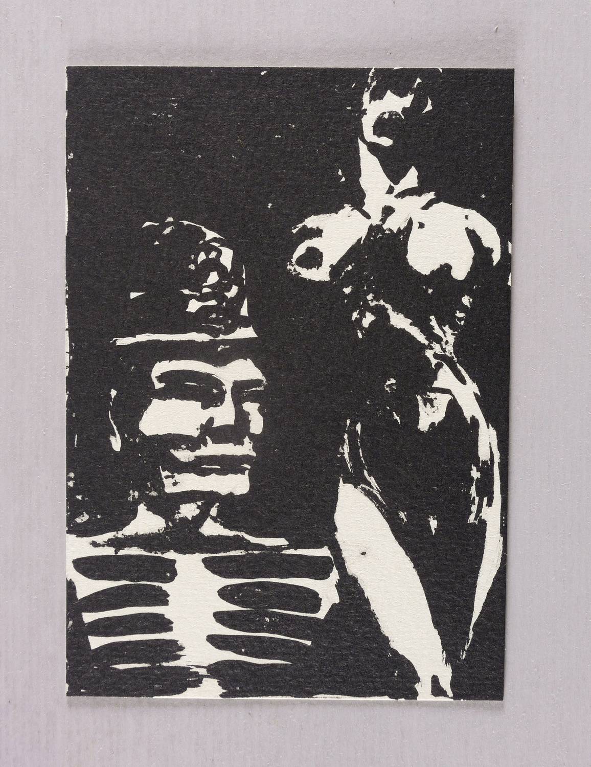 1987. Originaloffset / Pinsel, in Schwarz, auf weißem Werkdruck. – Originale Künstlergrafik, von Claus Weidensdorfer. – 13,5 x 9,5 cm (Darstellung / Blatt).