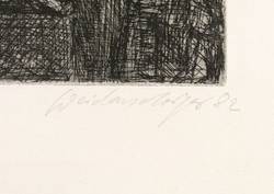 1982. Radierung / Strichätzung, in Schwarz, auf hellchamois Büttenkarton. – Originale Künstlergrafik, von Claus Weidensdorfer. – Probedruck. – 20,0 x 14,3 cm (Darstellung / Platte), 41 x 29 cm (Blatt).