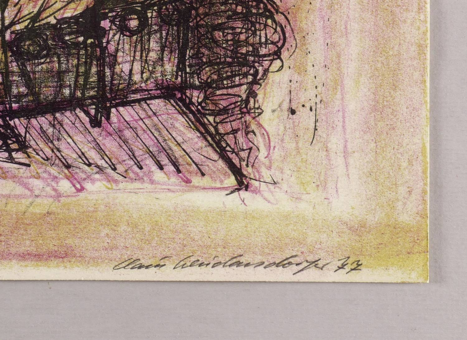 Muschter 237. – Rechts unten in Bleistift signiert und datiert: ″Claus Weidensdorfer 77″. In der linken unteren Blattecke Auflagenbezeichnung: ″131/150″. – Randloser Druck. – Hervorragend erhalten. Sehr guter Zustand.