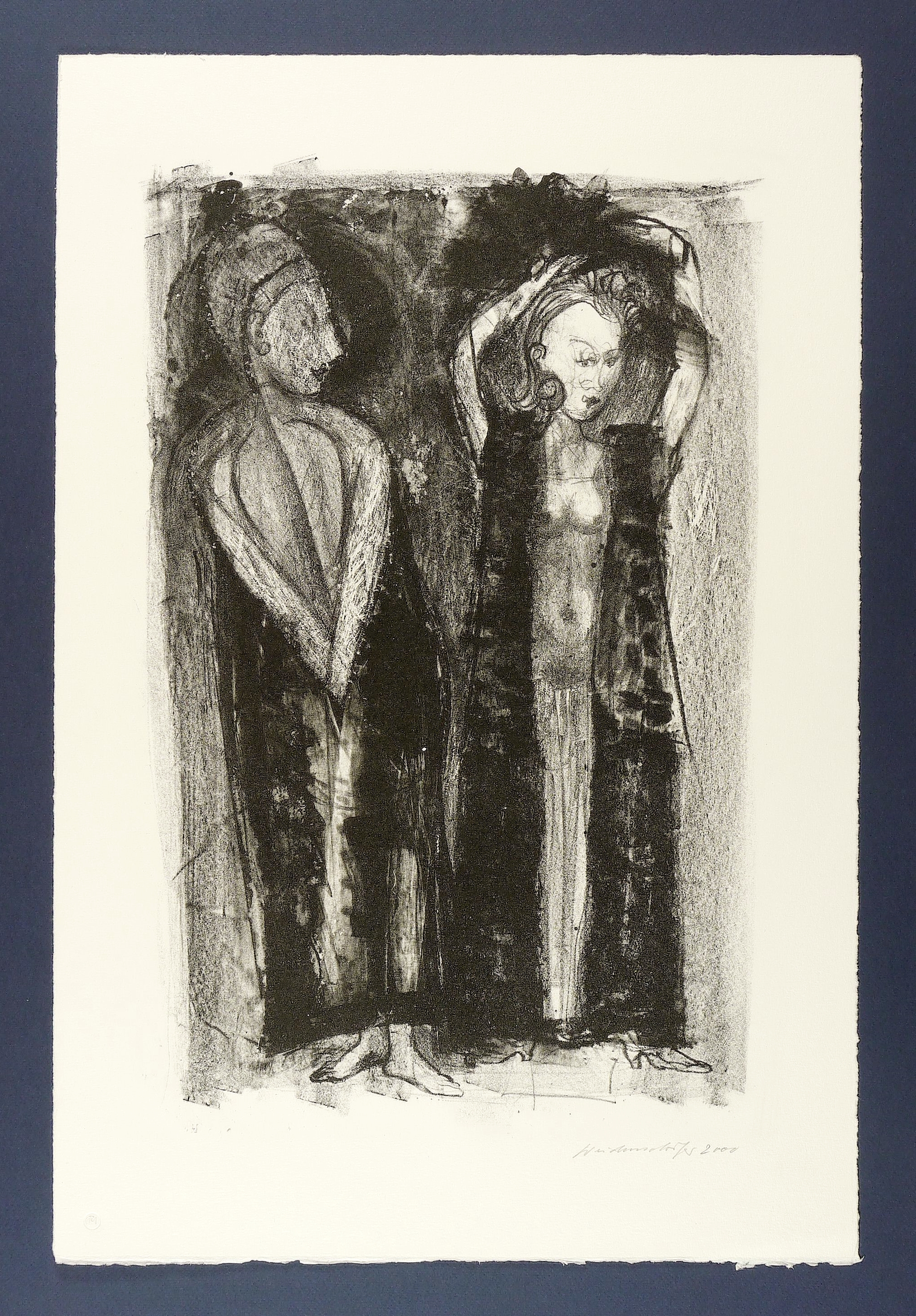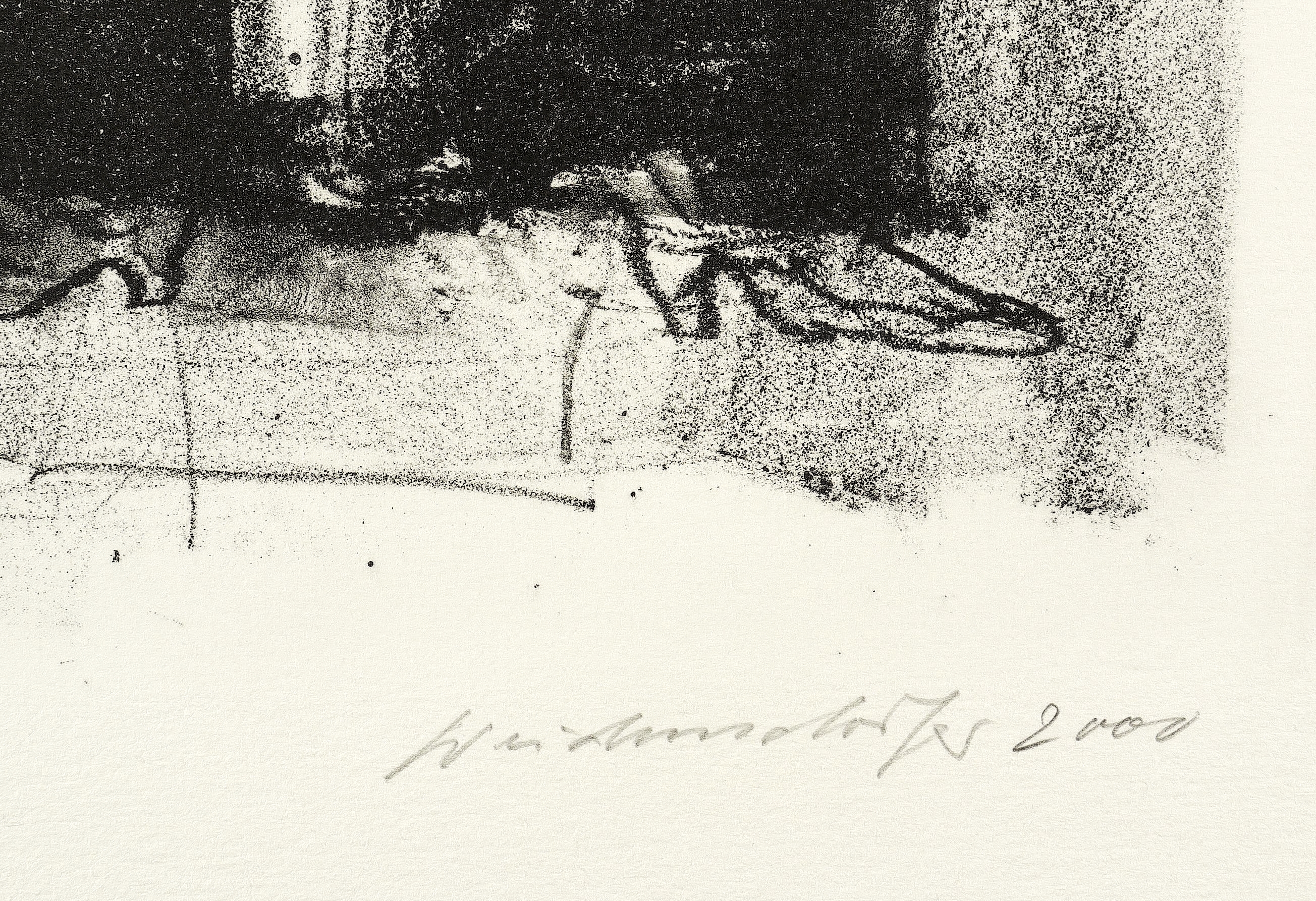 2000. Lithografie / Kreidelithografie, in Schwarz, auf schwerem hellchamois Bütten. – Originale Künstlergrafik, von Claus Weidensdorfer. – Auflage Exemplar Nr. 7/20. – 48,5 x 30,5 cm (Darstellung / Druckbild), 50,0 x 33,5 cm (Stein), 61 x 41 cm (Blatt).