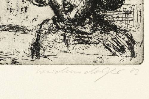 Nicht bei Muschter. – Unter der Platte in Bleistift signiert und datiert. Links unten eigenständige Auflagenbezeichnung: ″II 36/40″. Am Blattrand links unten Wasserzeichen der Hahnemühle. Verso Stempel der Plauener Grafikgemeinschaft. – Blattrand mit marginalen Mängeln. Guter bis sehr guter Zustand.