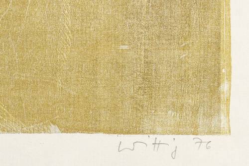 Werner Wittig (1930 Chemnitz - 2013 Radebeul). Deutscher Maler und Grafiker. 1952-57 Studium der Grafik an der HfbK Dresden bei Erich Fraaß, Hans Theo Richter und Max Schwimmer. Freundschaft mit Claus Weidensdorfer. 1957 Aufnahme in den Verband Bildender Künstler der DDR. Zahlreiche Einzelausstellungen z.B. in der Galerie Kühl in Dresden. Hans-Theo-Richter-Preis der Sächsischen Akademie der Künste in Dresden. Landschaft und Stillleben sind die zwei Hauptthemen des Künstlers, die meist mittels des Holzrisses oder Farbholzrisses umgesetzt werden. Typisch dabei sind die sichtbaren natürlichen Strukturen des Holzes, die, eingearbeitet in die Komposition, den Grafiken eine organische Lebendigkeit verleihen.