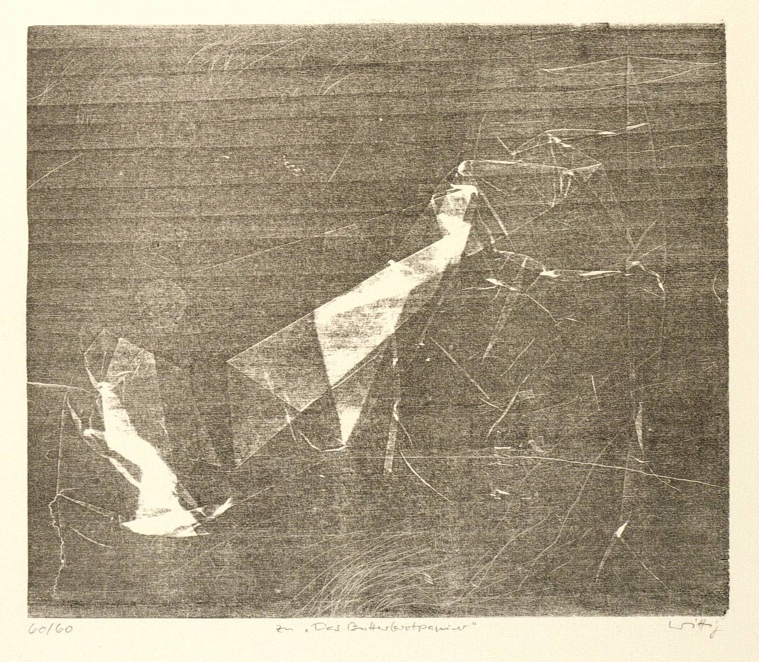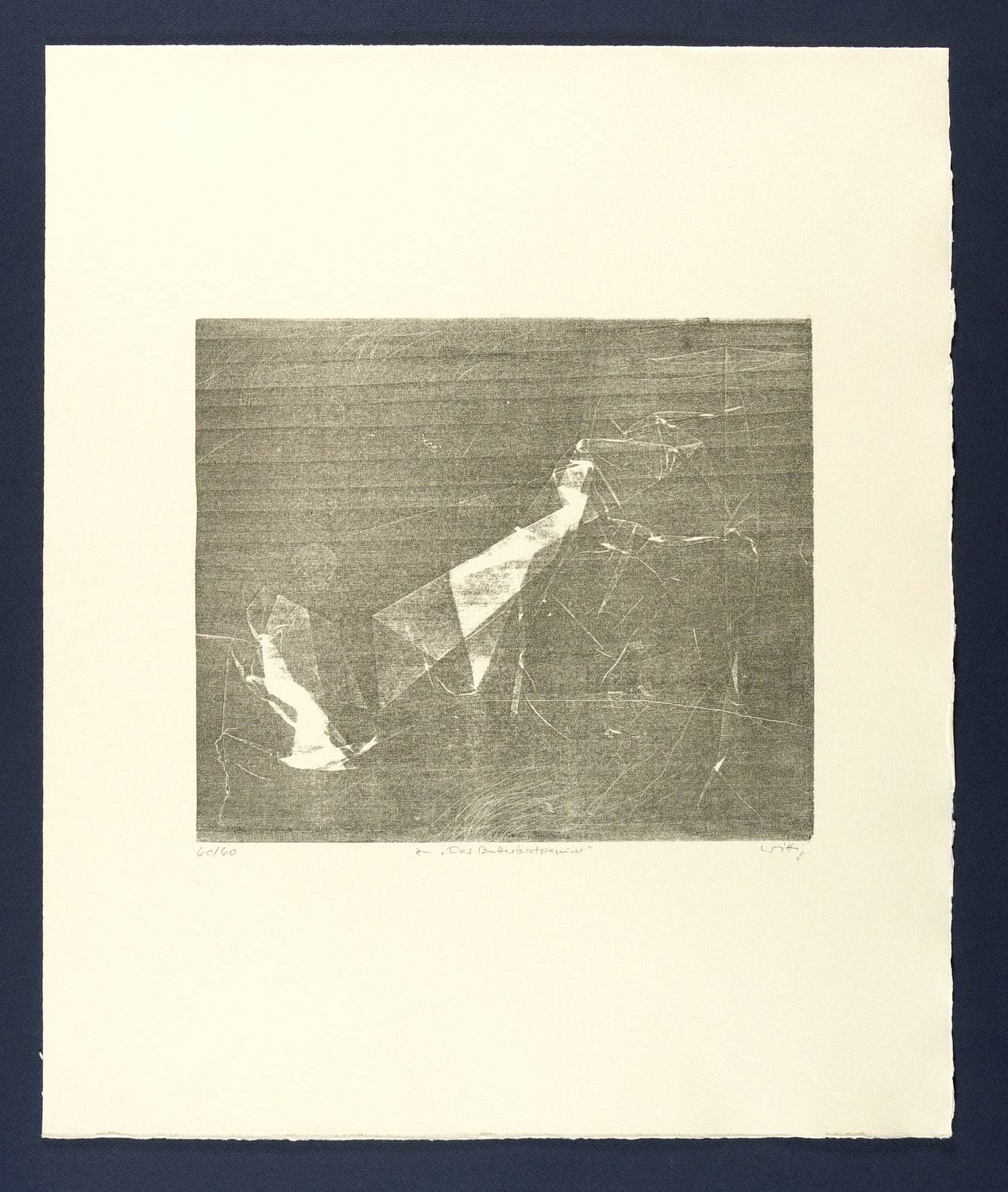 Reinhardt (2000) 158. – Aus: Werner Wittig, Tag-Nacht-Lampe. Holzrisse zu Gedichten von Christian Morgenstern (Dresden: eikon Grafik-Presse 1985). – Rechts unten in Bleistift signiert. Links Auflagenbezeichnung, mittig Titel. – Originalrandig. Sehr guter Zustand.