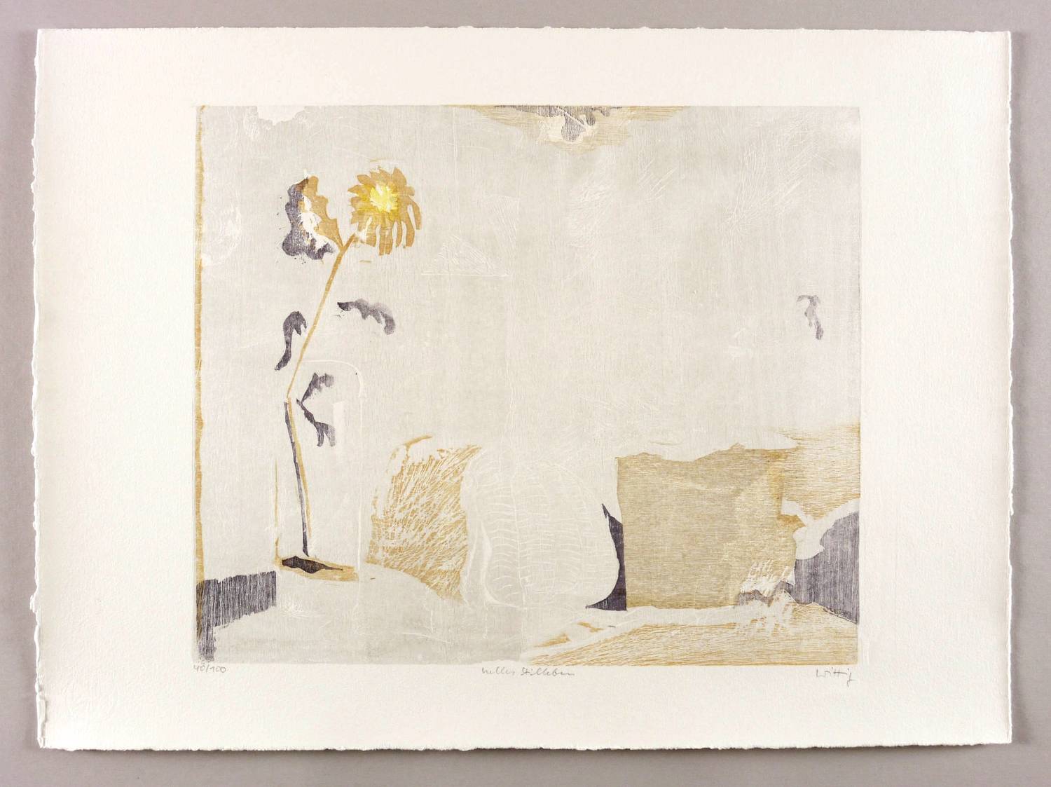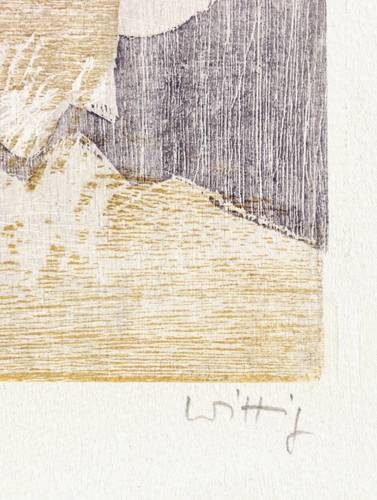 Werner Wittig (1930 Chemnitz - 2013 Radebeul). Deutscher Maler und Grafiker. 1952-57 Studium der Grafik an der HfbK Dresden bei Erich Fraaß, Hans Theo Richter und Max Schwimmer. Freundschaft mit Claus Weidensdorfer. 1957 Aufnahme in den Verband Bildender Künstler der DDR. Zahlreiche Einzelausstellungen z.B. in der Galerie Kühl in Dresden. Hans-Theo-Richter-Preis der Sächsischen Akademie der Künste in Dresden. Landschaft und Stillleben sind die zwei Hauptthemen des Künstlers, die meist mittels des Holzrisses oder Farbholzrisses umgesetzt werden. Typisch dabei sind die sichtbaren natürlichen Strukturen des Holzes, die, eingearbeitet in die Komposition, den Grafiken eine organische Lebendigkeit verleihen.