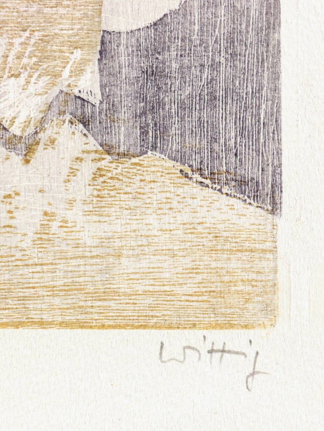 1981. Farbholzriss, von 3 Stöcken, auf schwerem hellchamois Hahnemühle-Bütten. – Originale Künstlergrafik, von Werner Wittig. – Auflage Exemplar Nr. 40/100. – 30,9 x 36,9 cm (Darstellung / Druckbild), 40 x 54 cm (Blatt).