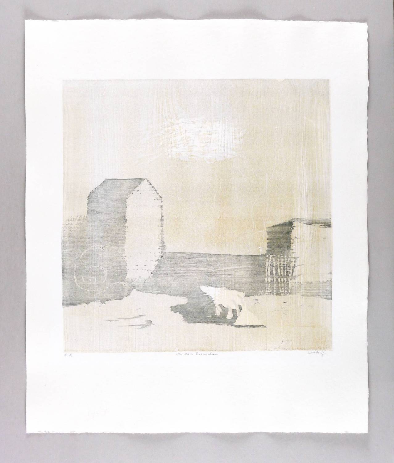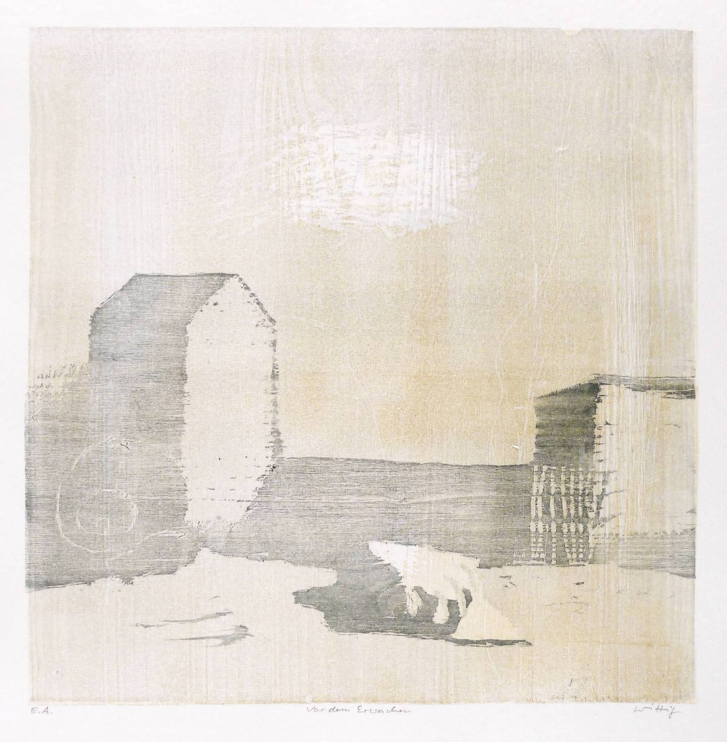Reinhardt (2000) 215 b. Reinhardt (1993) 367 b (von b). – Rechts unten in Bleistift signiert: ″Wittig″. Links Auflagenbezeichnung: ″E.A.″ Mittig Titel: ″Vor dem Erwachen″. – Eines von insgesamt 11 Künstlerexemplaren. – Schönes Blatt. Sehr guter Zustand.