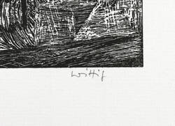 1973. Holzriss, in Schwarz, auf rauem hellchamois Maschinenbütten. – Originale Künstlergrafik, von Werner Wittig. – Auflage 130 Exemplare. – 19,8 x 24,9 cm (Darstellung / Druckstock), 29 x 36 cm (Blatt).